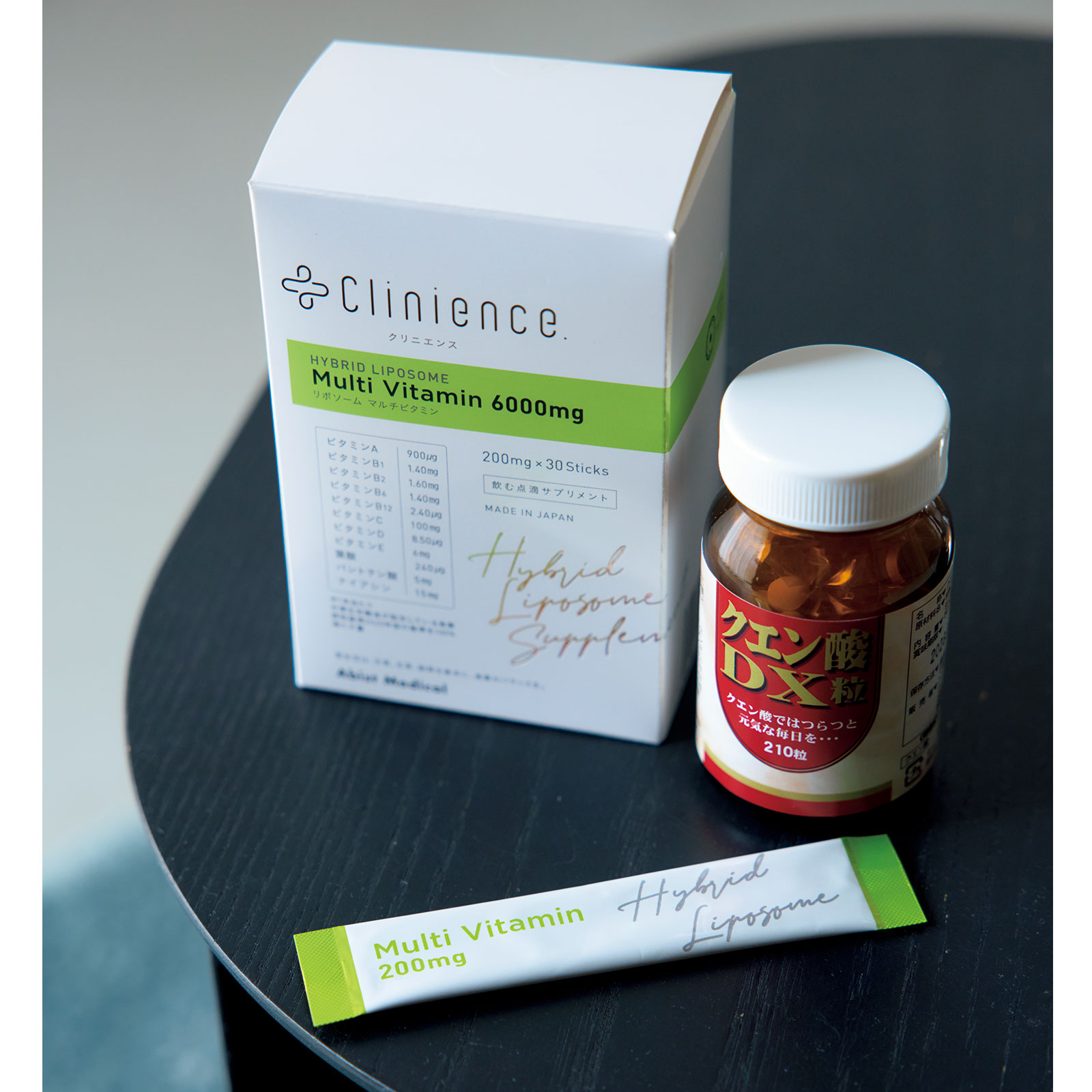 夫婦でクエン酸を摂取するようになってから、夏バテレスに。夜寝る前はリポソームのマルチビタミンで体の修復を。左/Clinience リポソームマルチビタミン 30包 ¥9,250(アビストメディカル)右/クエン酸 DX[ 210粒/約30日分] ¥2,480(ユウキ製薬)