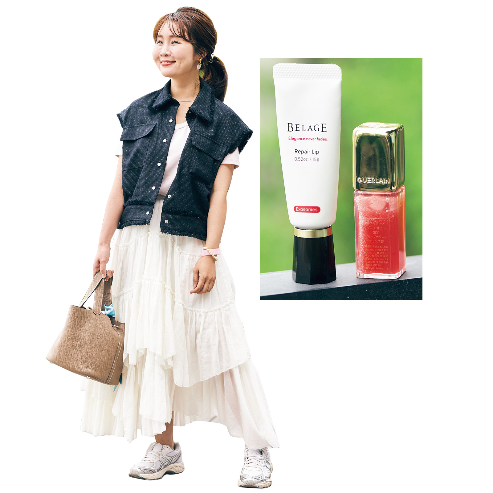 年齢とともに唇が痩せ、縦ジワが増えてきて悩んでいた時に出合ったベルアージュ リペアリップ。保湿力だけでなく、エクソソームがハリとツヤも与えてくれます。ゲラン キスキス ビー グロウ オイル309を重ねたら相乗効果でぷるぷる唇になり血色感もアップ。