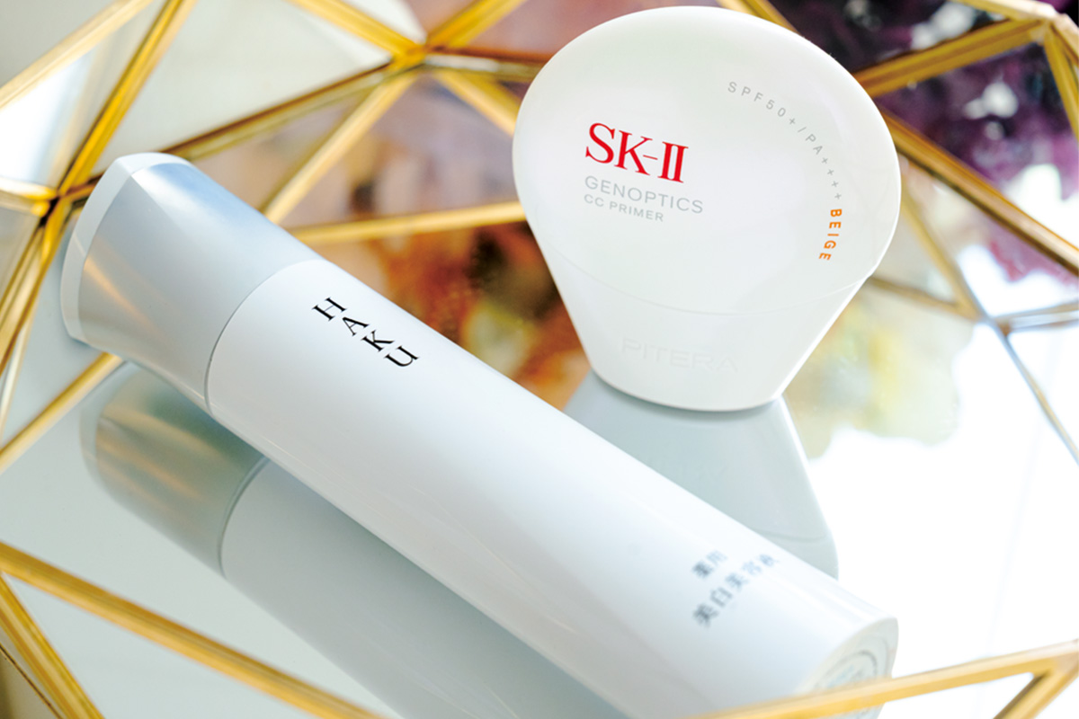 5月号の「2週間で変わりたい! 私のシミ、どこまで消える?」企画にHAKUを数年ぶりに復活! さらにファンデ級のカバー力のSK-II CCプライマーを重ねれば、くすみを飛ばして透明感のある肌に。