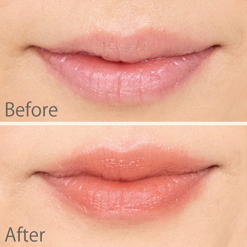 輪郭がぼやけてきたしぼみ唇も、丁寧に重ねることでふっくら艶やかに。適材適所のタイプの質感&色使いと、ハイライトの光をプラスすることで 影もシワも目立たず、痩せ唇もふっくら、メリハリのある仕上がりに。人中も短く見えるうれしい効果で、下半顔もさりげなくタイトニング。