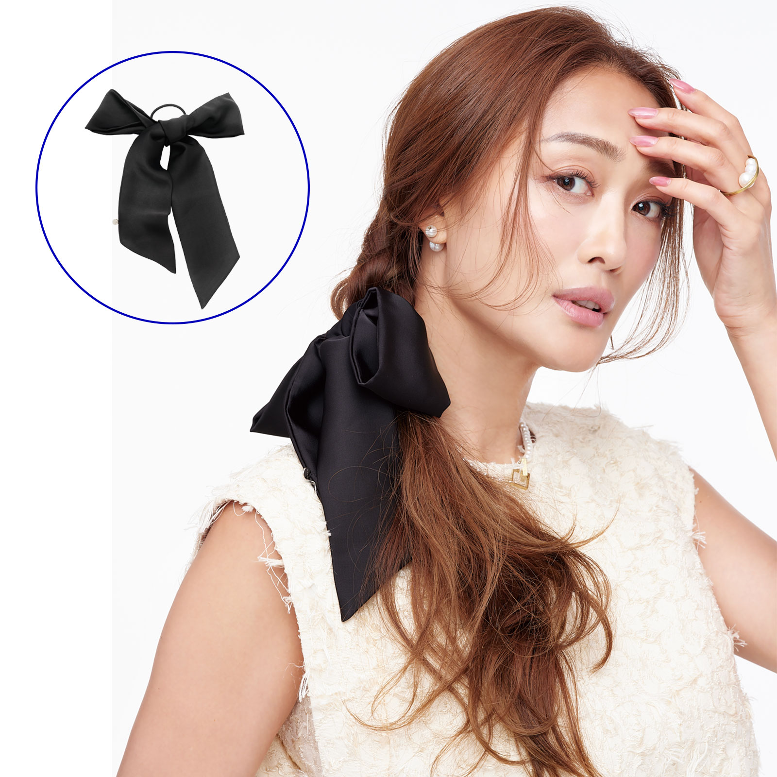 片リボンでモードに、きっちり形を作ってエレガントになど、大きさや結び方次第でコーディネートの幅が広がります。