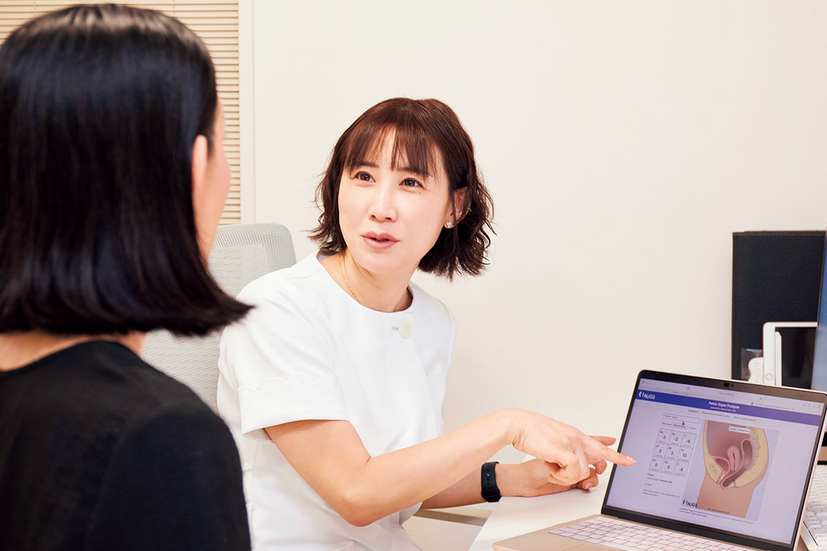 問診表とカルテは患者さんの現在の症状を診断するための情報の宝庫。出産歴や過去に受けた施術、痛みや痒みなどがあるのか、現在の生活にどのような支障を感じているのかなど時間をかけて丁寧に確認していきます。