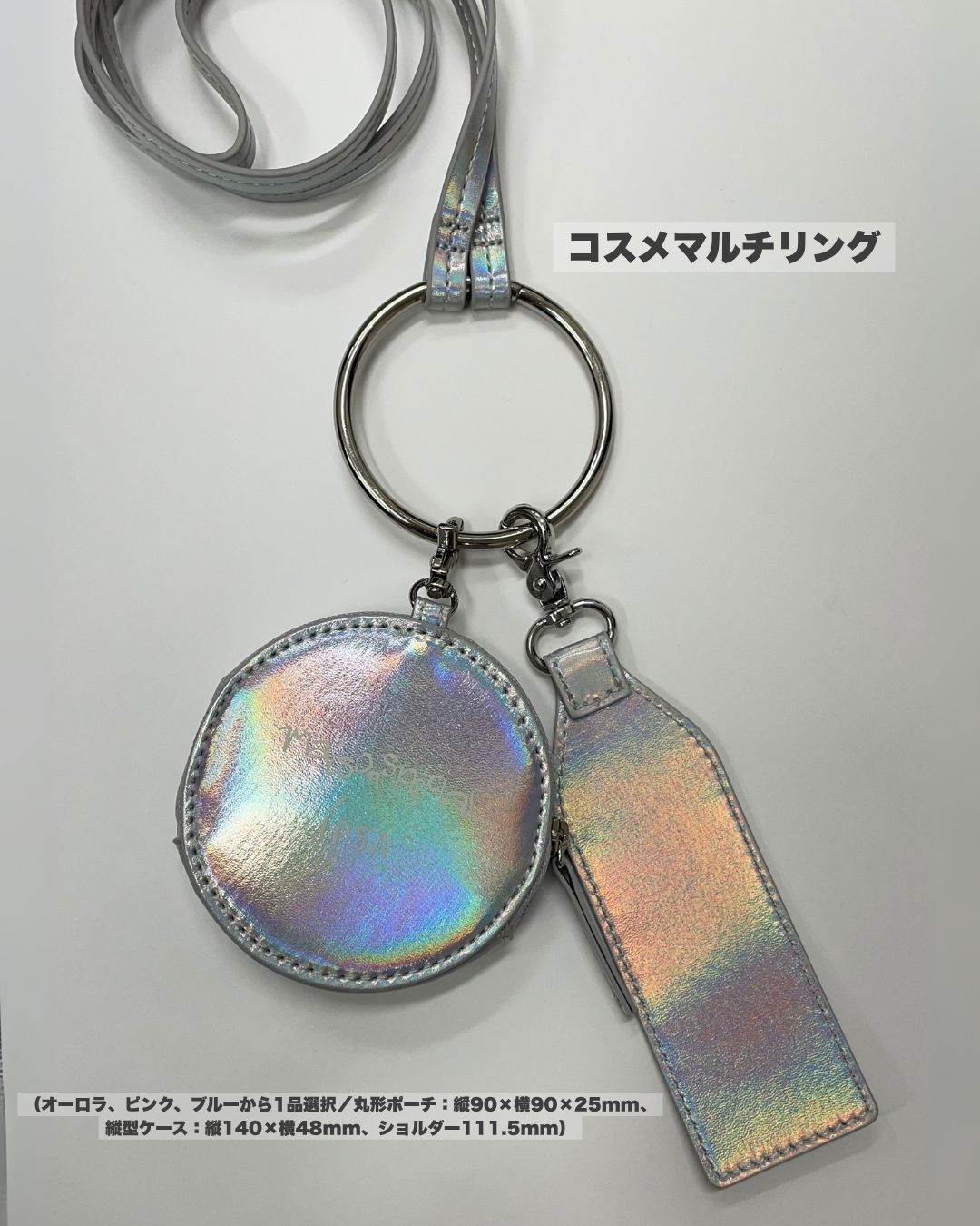 コスメマルチリング(MAISON SPECIALコラボ)(オーロラ、ピンク、ブルーから1品選択/丸形ポーチ:縦90×横90×25mm、縦型ケース:縦140×横48mm、ショルダー111.5mm)