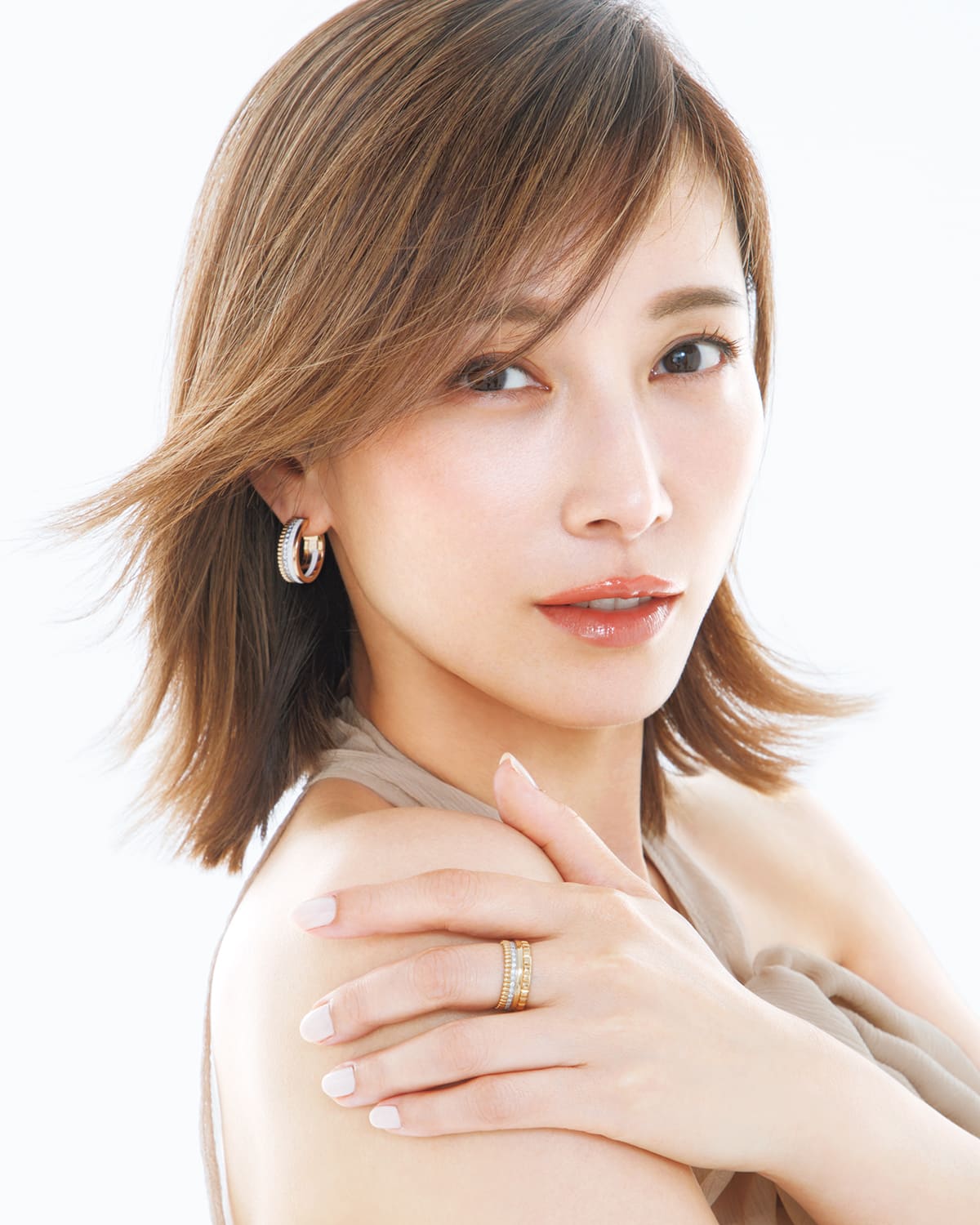 [写真1-2枚目]ブラウス ¥86,900 スカート ¥100,100(ともにヌメロ ヴェントゥーノ/イザ)「ビー ドゥ ショーメ」ピアス[YG×DIA]¥713,900 右手人差し指リング[PG×DIA]¥346,500 薬指リング[PG×DIA]¥620,400 左手リング[PG]¥166,100(すべてショーメ)[写真3-5枚目]デニムジャケット ¥107,800 デニムスカート ¥60,500(ともにヌメロ ヴェントゥーノ/イザ)「LOVE」イヤリング[YG]¥621,500 薬指リング[YG×DIA]¥660,000「クラッシュ ドゥ カルティエ」人差し指リング[PG×DIA]¥935,000(すべてカルティエ/カルティエ カスタマー サービスセンター)パンプス ¥128,700(セルジオ ロッシ/セルジオ ロッシ カスタマーサービス))[写真6-8枚目]ブラウス ¥146,300(ニナ リッチ/イザ)「キャトル ホワイト」ピアス[YG×WG×PG×ホワイトセラミック×DIA]¥1,584,000 バングル[YG×WG×PG×ホワイトセラミック×DIA]¥715,000 右手リング[YG×WG×PG×ホワイトセラミック×DIA]¥1,148,400「キャトル ラディアント」左手リング上[YG×WG×DIA]¥869,000 リング下[YG]¥379,500(すべてブシュロン/ブシュロン クライアントサービス)[すべて予定価格]