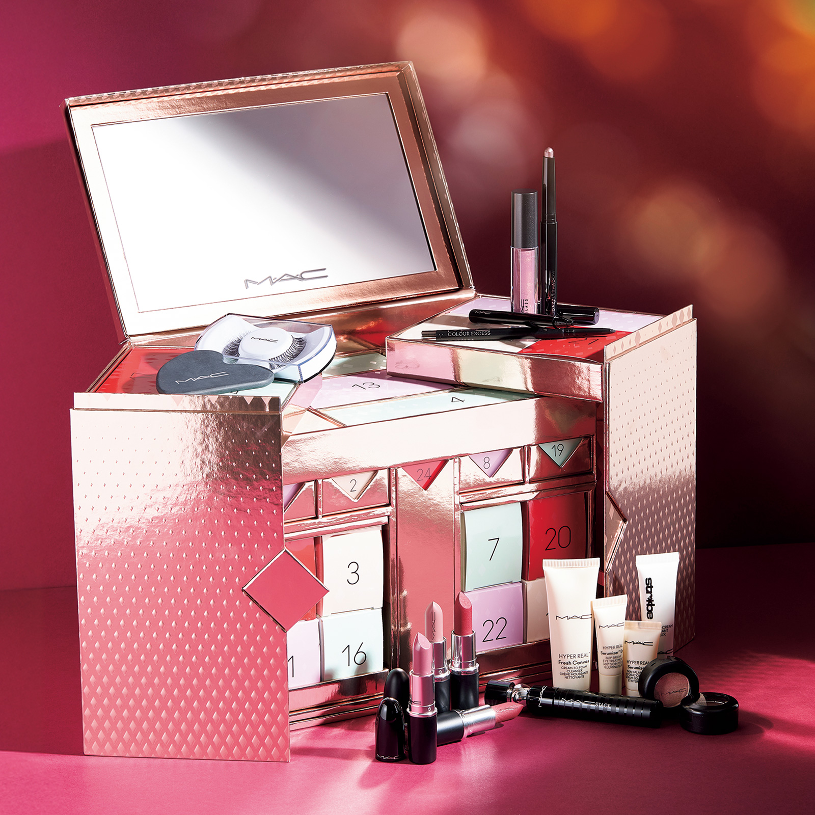 ミラー付きの華やかなドレッサー仕様のBOXには大人気のアイコニックな24アイテムがセット。メイク前の肌を美しく整えるスキンケアシリーズ「ハイパーリアル」から、ホリデーを艶やかに彩るリップスティックや名品のリップガラスなど、人気メイクアップアイテムまでが勢揃い。アドベントでしか手に入らない限定品もお楽しみに! 24 ミステリー マストハブ アドベント カレンダー ¥44,000(M・A・C)