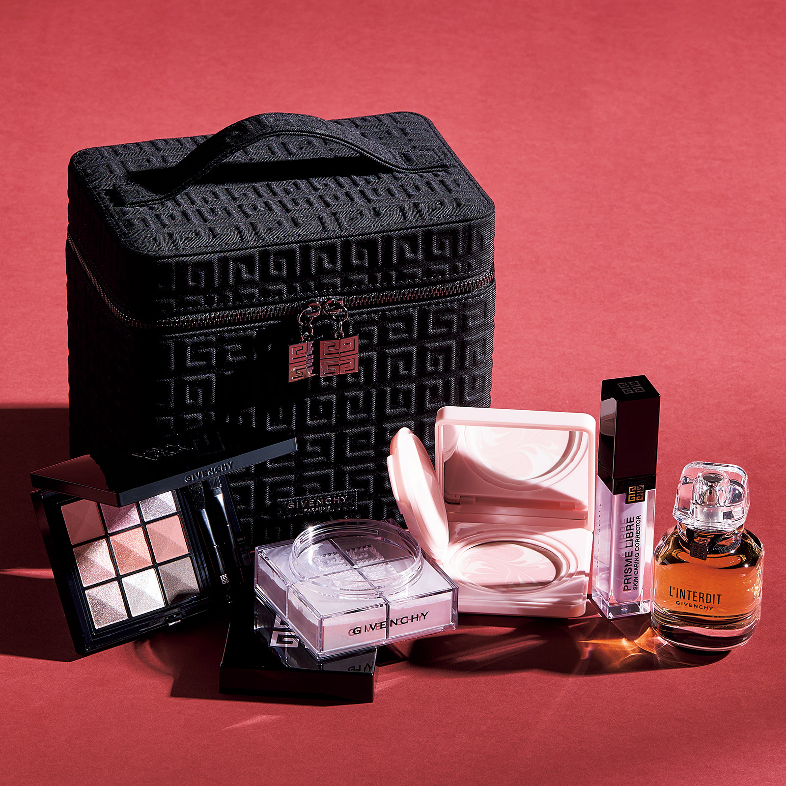 モノグラムデザインのアイコニックなバニティと、スターアイテムが一度に試せる! ウィンター ビューティ キット ¥44,550(パルファム ジバンシイ)