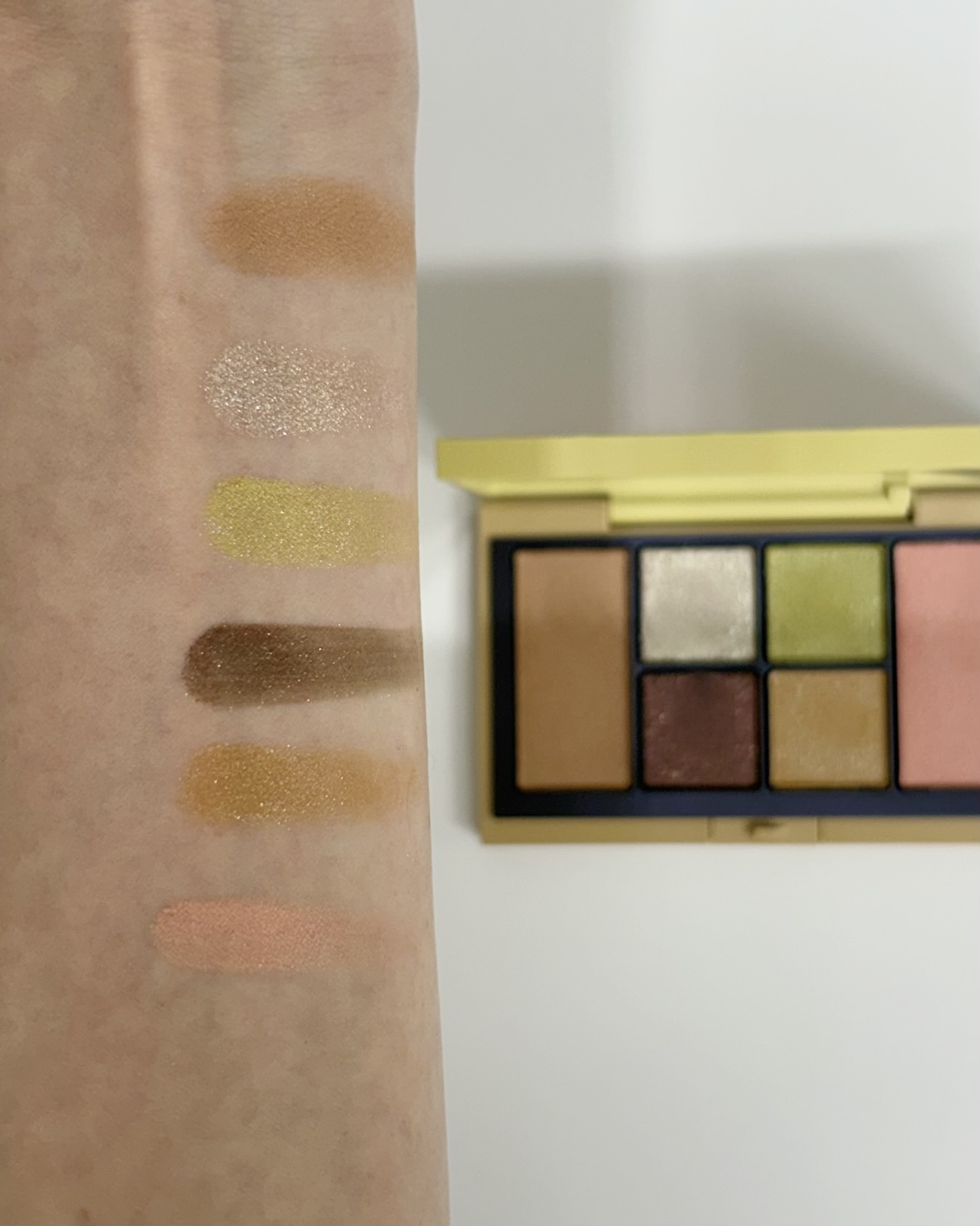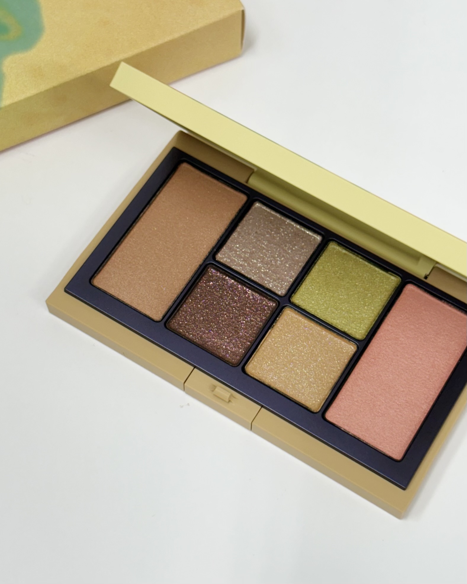 異国の情景にインスパイアされた豊かな色と質感のアイシャドウ4色、降りそそぐ陽射しを思わせるブロンザーとチークがセットされた限定パレット。