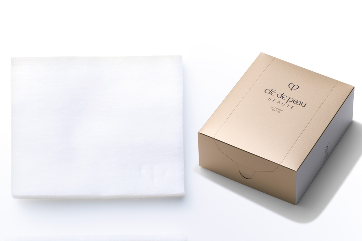 割いて使える4枚重ねタイプ。表面に細かい凹凸があり拭き取りにも適している。サイズ/6×8cm 4 レイヤリング コットン 100枚 ¥1,100(カネボウインターナショナルDiv.)