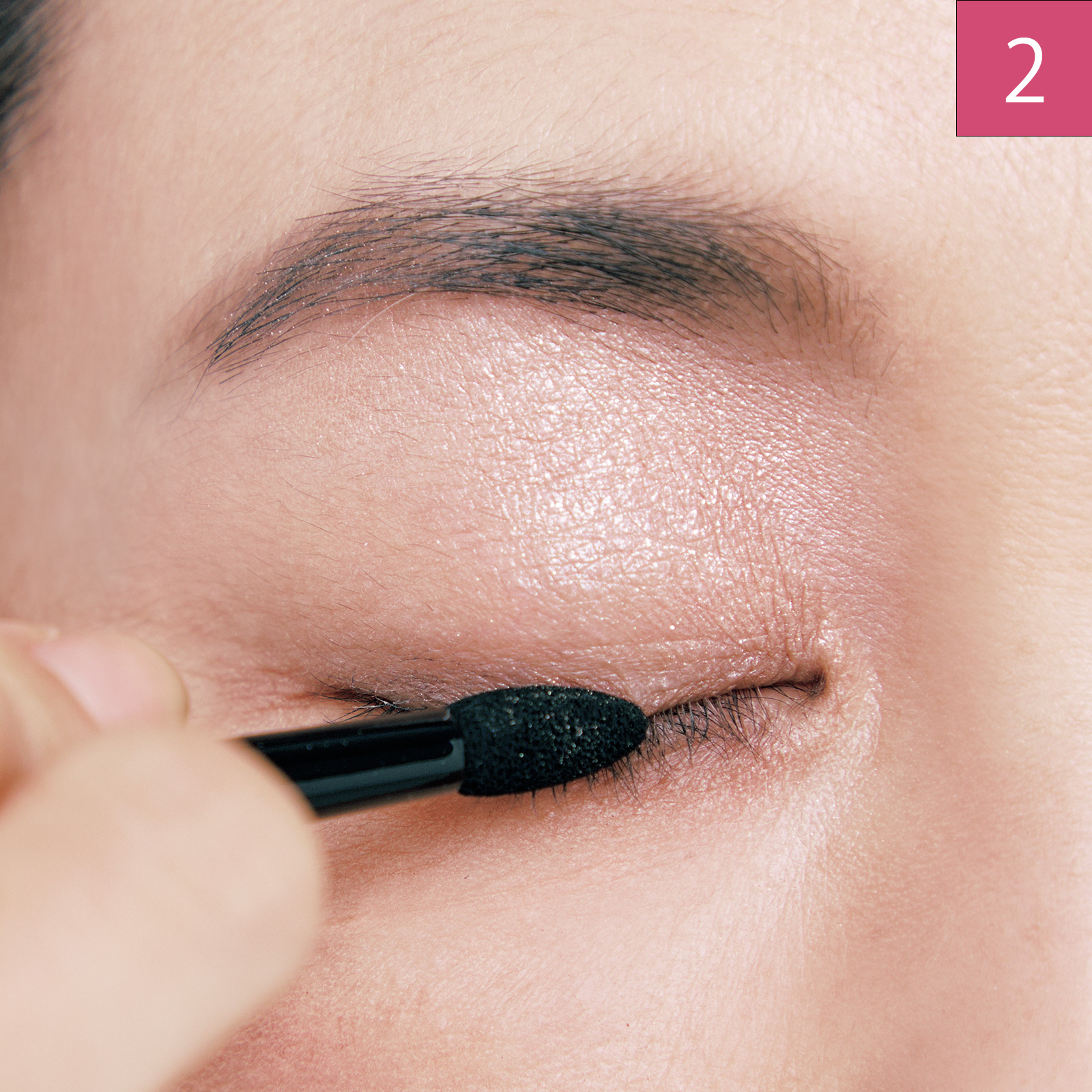 くぼんで萎んだまぶたをコンシーラーでふっくらさせ、ピンクシャドウを重ねてさらに立体感をプラス。ハリ感も強調できます。