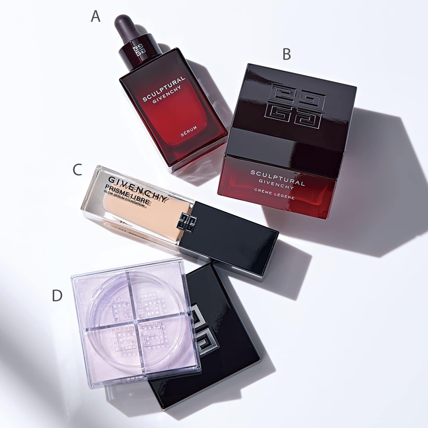 スカルプチュラル セラムはとろっとしているのに肌なじみがよくて、瞬時に浸透する意外性にびっくり。肌密度が上がりキュッと引き締まります。手にとった時に重ため?と思ったクレームも肌にのせたら軽やかな薄ヴェールになって、メーク前にも使える心地よさ。全身に纏いたいくらい好みの香りなので寝る前に使うと幸せな気持ちに。ファンデーションはサラッと均一に伸びるので忙しい時にもパパッとメークが可能。ナチュラルな極薄膜に仕上がるので厚塗り感が苦手な私にはぴったりです。ほどよいツヤとカバー力もあり、重ねる量次第で世代問わず幅広く使えそうですね。そして、長年愛用しているプリズム・リーブル!敏感肌なのでファンデ後のパウダーは刺激回避のためにもマストですが、4色を混ぜて使う発想はジバンシイが元祖じゃないですか?ごく自然に透明感を出して肌をキレイに見せる粒子の細かさと色味、4色の組合わせによってニュアンスが自在なので、その日によって変えて楽しんでいます。