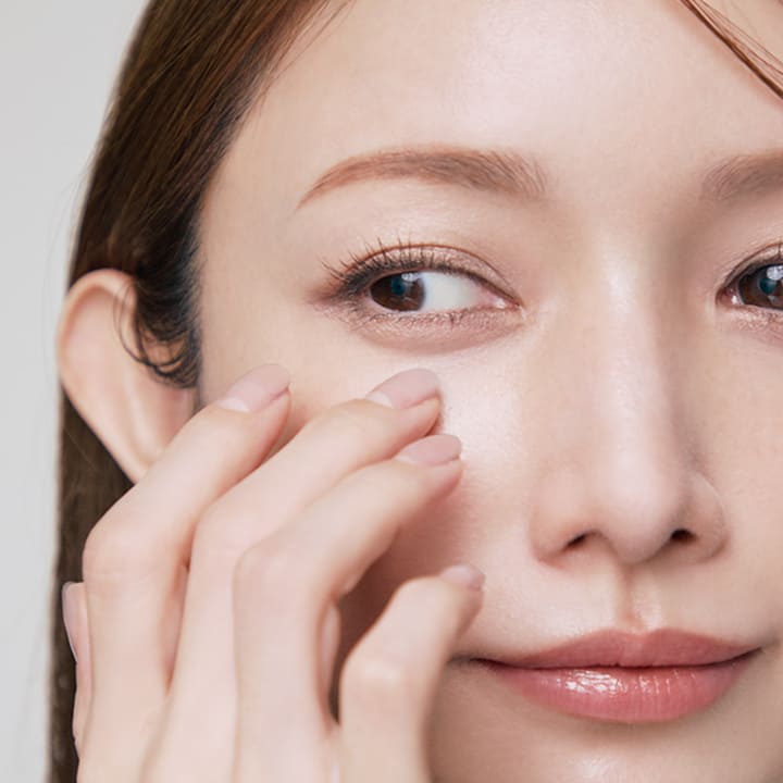小ジワが目立ちやすい目周りには薄づきのファンデが最適。顔全体よりもさらに薄めに塗るとシワ落ちもなく、キレイな目元をキープできます。