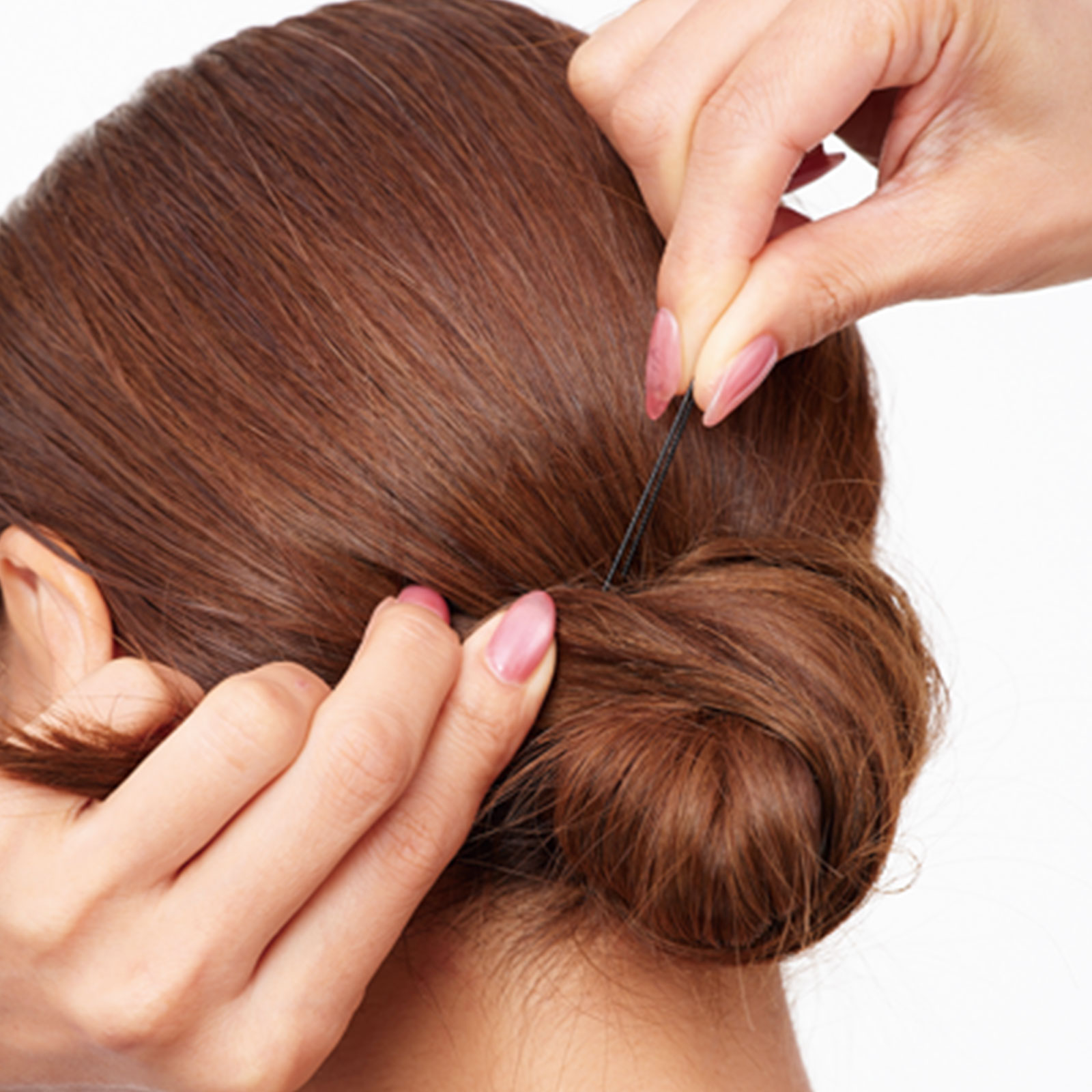 3.巻きつけた最後と根元にUピンを刺してお団子を固定。