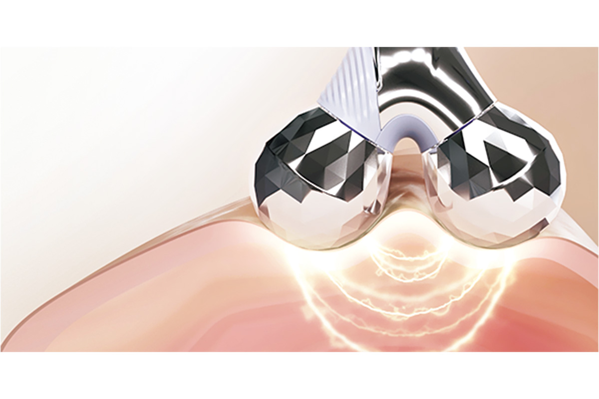 リファ初のEMSを搭載したマイクロカレントローラーで、肌深層にアプローチするマッスルトレーニングと立体的につまみ流すドレナージュの2つのケアが可能に。筋肉に効率よく届く周波数のEMSが肌の奥に存在している筋肉を鍛え、引き締めながら流して、ハリと輝きのある肌に導きます。