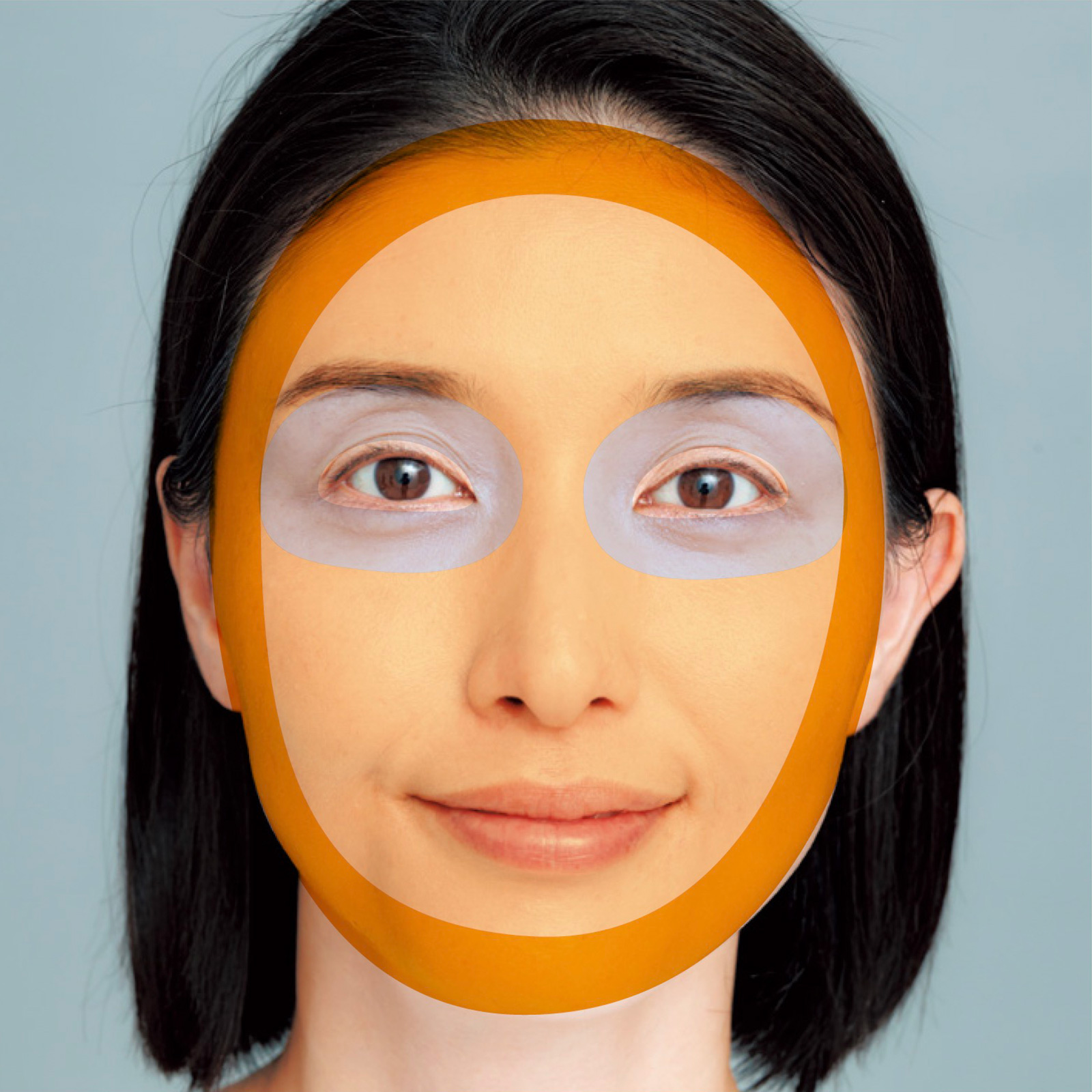 フェイスラインに柔らかいカゲを仕込めばツヤ肌との対比で立体感UP。間延び感も和らぎます。ファンデにブラウン系クリームチークを混ぜ、耳下からエラ、額の生え際に。凹みがちなこめかみは避けて。
