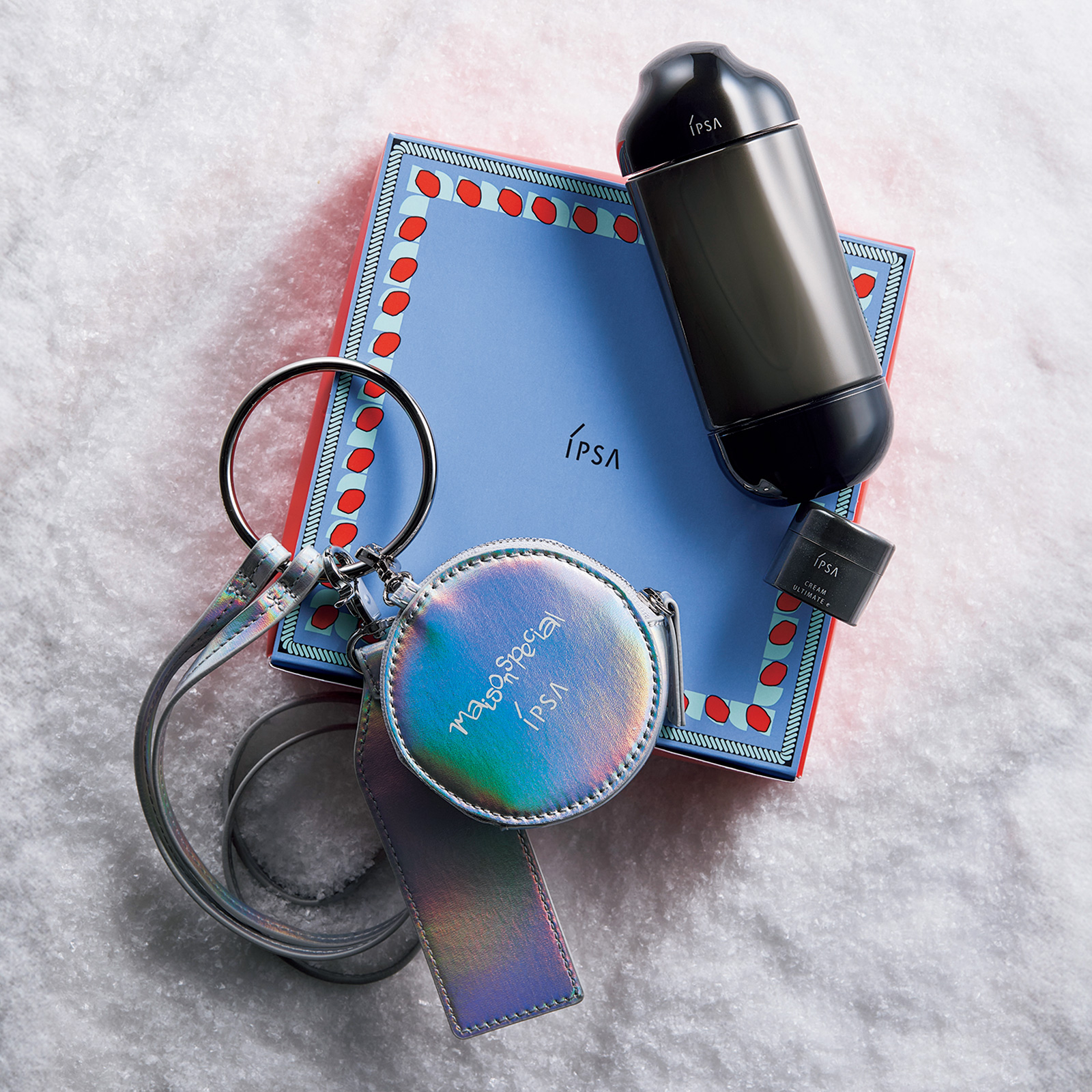 上質なハリ感と透明感を与えてくれる化粧水「エッセンスローション アルティメイト」の現品と、贅沢な潤いで満たすクリーム「クリーム アルティメイトe (医薬部外品)」の特別サイズ、さらに「MAISON SPECIAL」のリングショルダーポーチがついた特別なキット。イヤホンやリップなど小物の持ち運びに◎。ファッションのアクセントにも。イプサ エッセンスローションキット ¥11,550(イプサ)