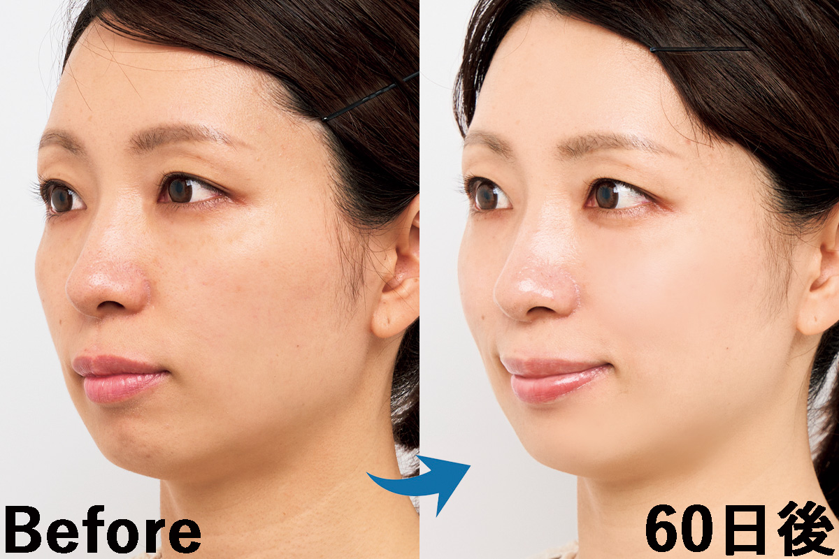 くすんでいた肌が明るくなり、顔全体にツヤも出現。顔色も良くなり血色がよくなったため健康的に!フェイスラインも引き締まり、顎下のゆるみもスッキリとして目元もぱっちり。ハリツヤ肌で小顔印象に。