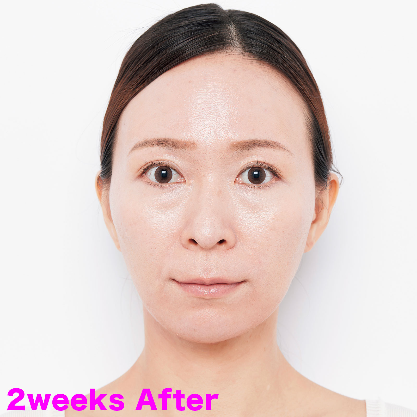 目の下のくぼみ感が2週間の使用後にふっくら整った。夏の肌荒れも改善。35日使ったら、さらに目元の影があきらかに浅く薄く変化。口元のもたつきもオフ。全体のハリ感もアップして肌の透明感もプラス。