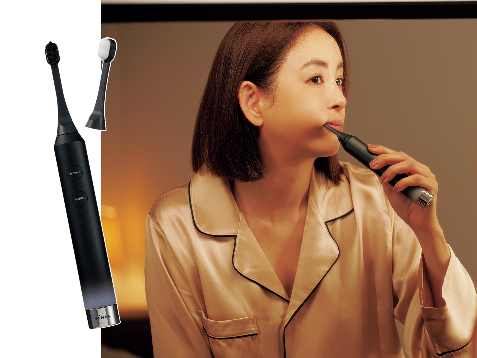 歯ブラシのヘッド部分にEMSがセット。口の内側から表情筋を刺激できる電動ブラシで歯磨きしながら口元のポニョを撃退。