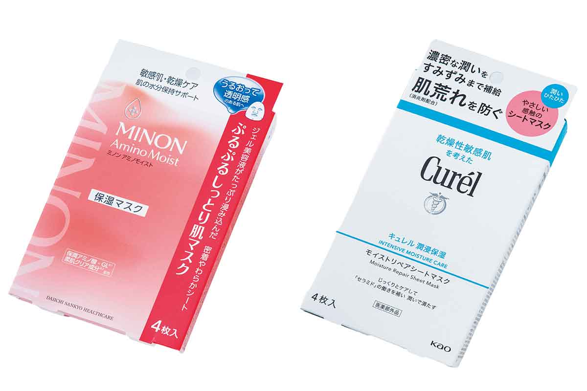 初期たるみには、表皮の水分保持こそ重要。表皮に水分がきちんとあると細胞が手を取り合って引っ張り合うような力がちゃんと生まれて、肌のムチッと感が高まります。肌のうるおい力をサポートして、水分を肌に溜め込む成分は、やっぱりセラミドとアミノ酸!キュレルの潤浸保湿 モイストリペアシートマスクや、ミノン アミノモイストのぷるぷるしっとり肌マスクのシートマスクが優秀です!肌にじっくり入れ込んでいます。