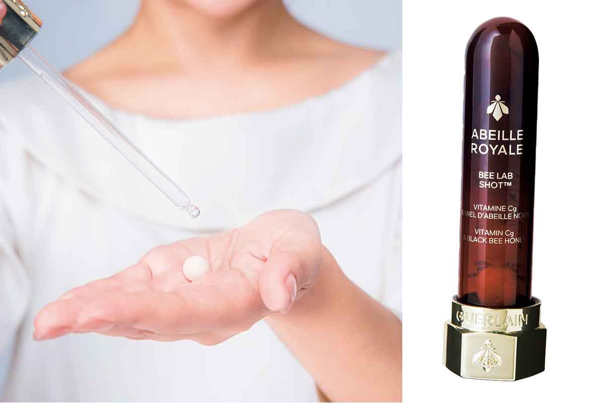 ぷりんとした肌の素になるコラーゲンやエラスチン。それを生み出す線維芽細胞は30代後半になるとどんどん減ります。早いうちから線維芽細胞を活性化させることが大事。線維芽細胞が大好きなのがビタミンC。だからビタミンC美容液は欠かせません。ゲランのアベイユ ロイヤル ビー ラボ ショットは高濃度ビタミンCがフリーズドライされた画期的な固形美容液。ゲランのアベイユ ロイヤル ウォータリー オイル セロムに溶かして使っています。