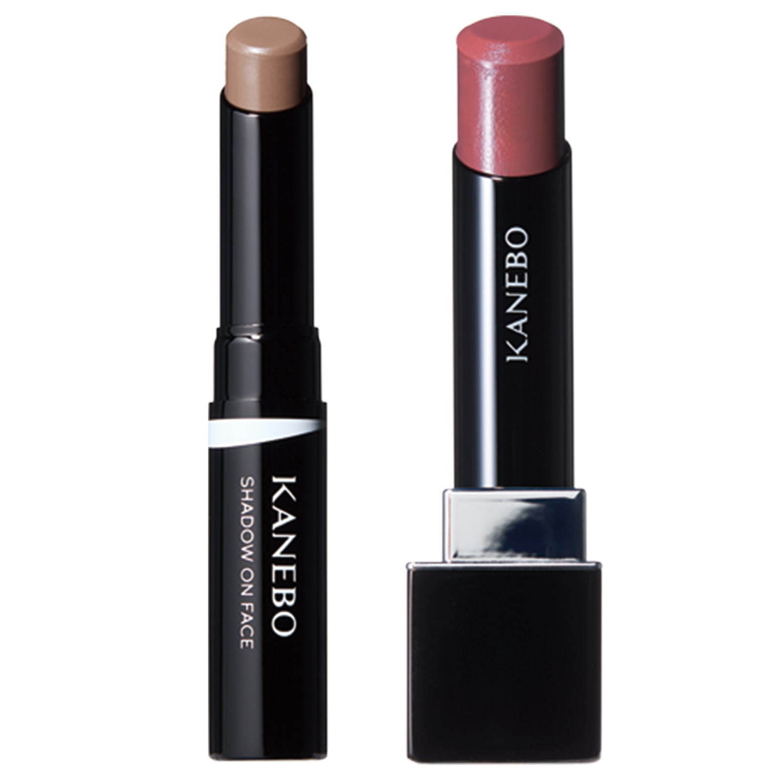 左:「肌なじみ抜群のシェーディング。絶妙な影色を指に取ってなじませれば自然な陰影が」シャドウオンフェース ¥3,300、右:「唇が乾燥しがちだから潤いが続くリップはありがたい!誰にでも使いやすい質感でカラバリも豊富。V07はパーティなどの華やかな場面にもぴったり」ルージュスターヴァイブラント V07 ¥4,620