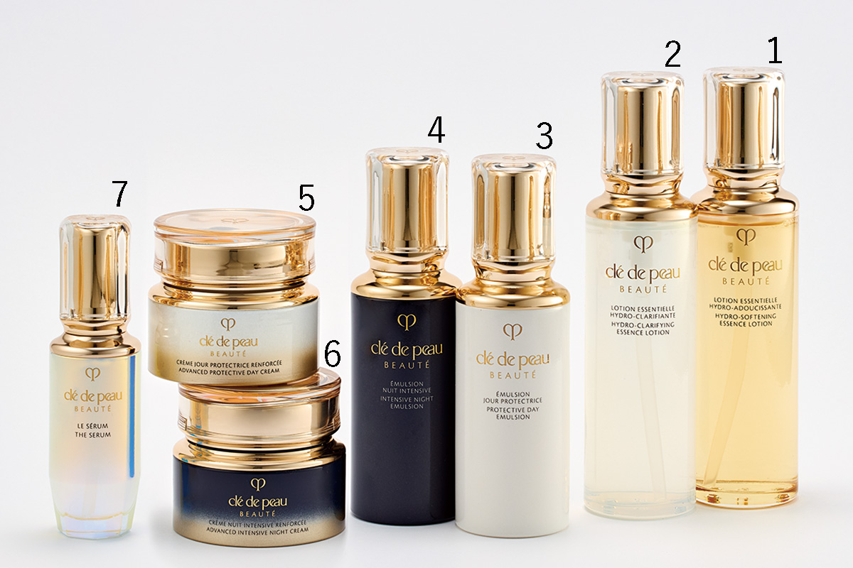 3は日中用乳液。SPF25・PA+++ 125ml ¥15,400、4は夜用乳液。125ml ¥17,600(ともにクレ・ド・ポー ボーテ)
