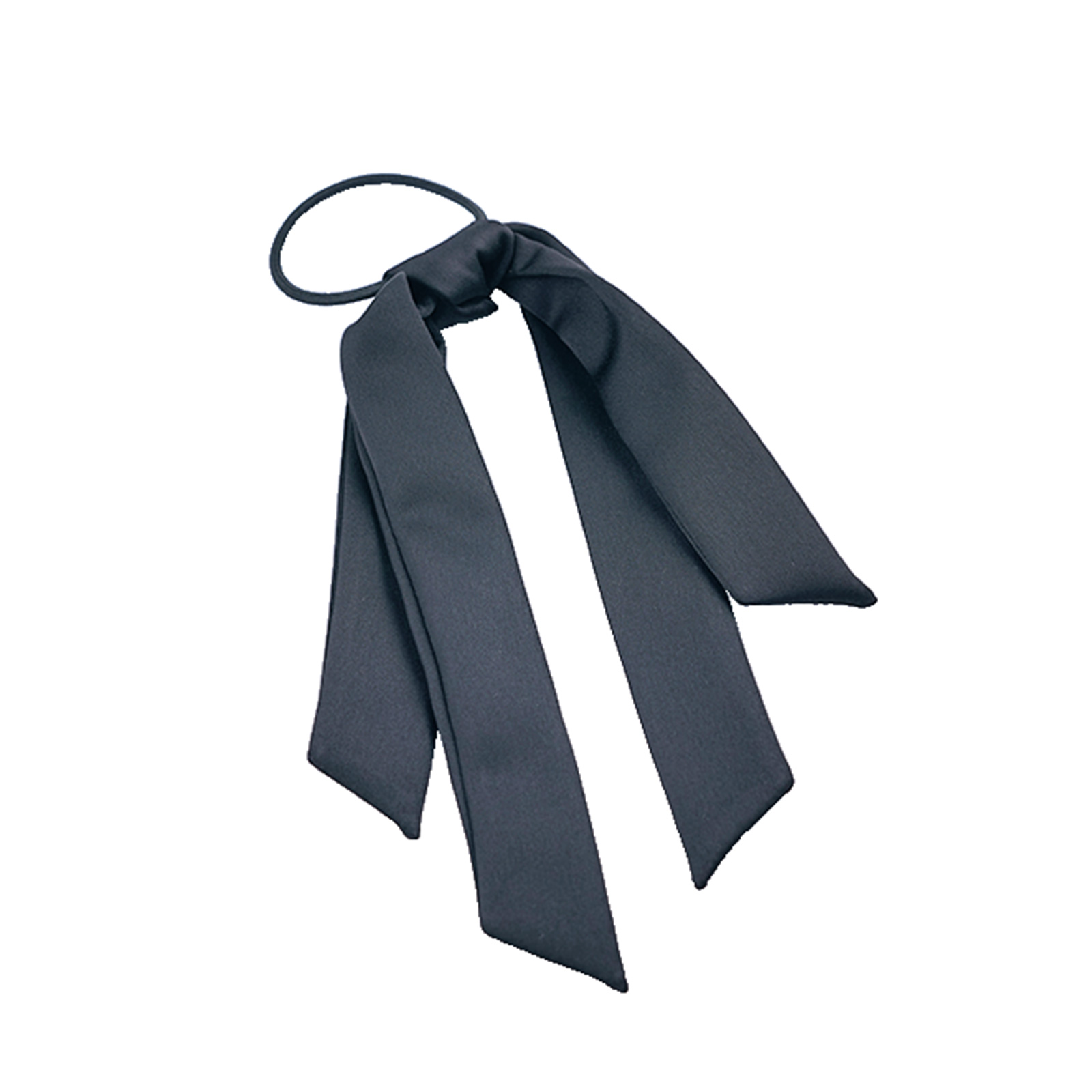 上品に仕上がるサテン素材。黒リボンポニー¥1,100(OSEWAYA/お世話や)