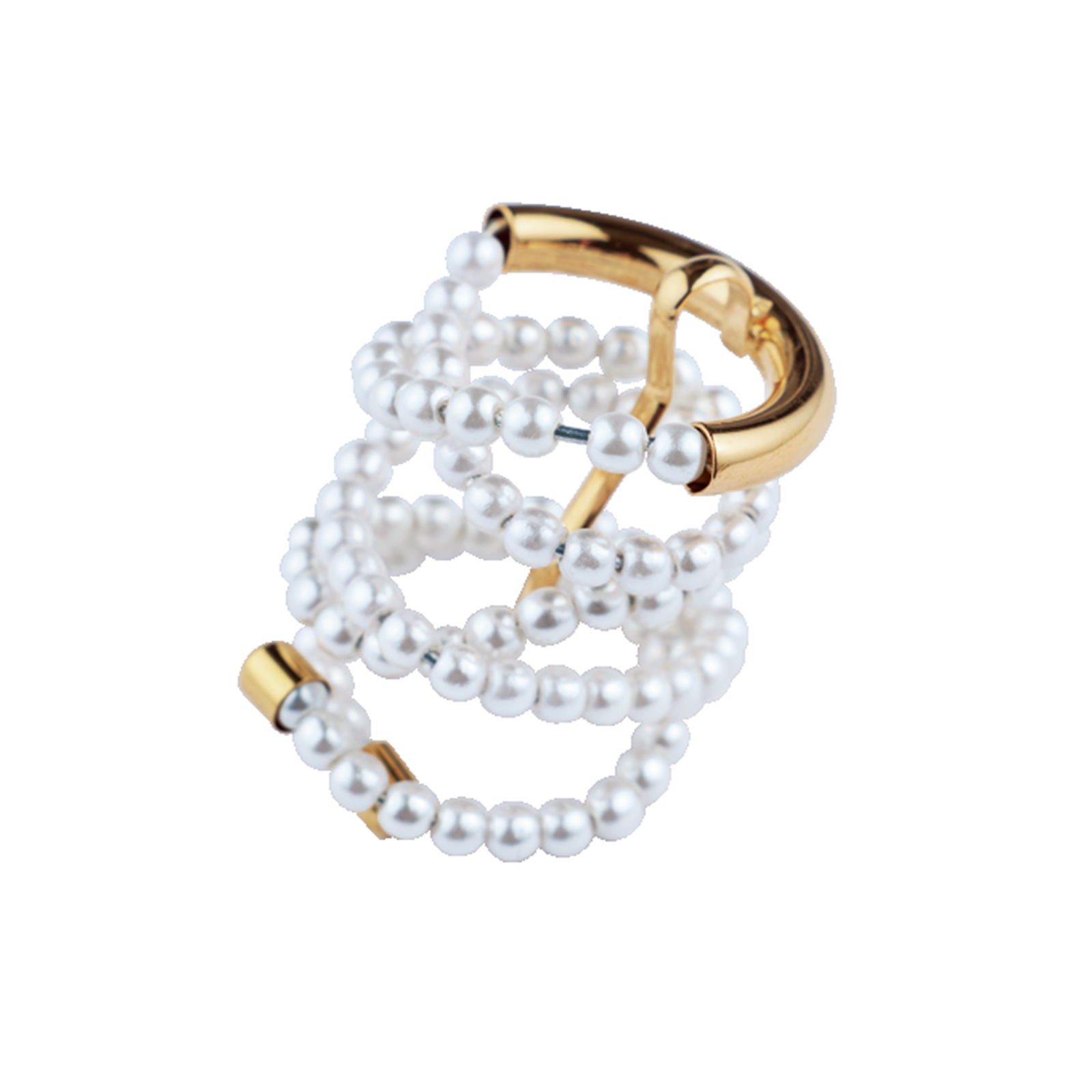 ワイヤーになったパールを巻きつけます。ゴールド×パールヘアカフ¥1,540(MUK)
