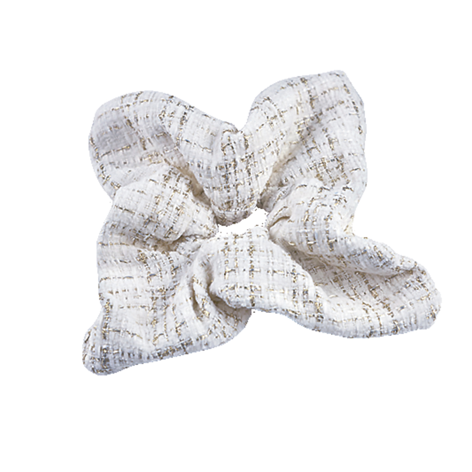 ラメが織り込まれた華やかなデザイン。ツイードスクエアシュシュ¥1,980(dee doo dah/アジュールスカイ)