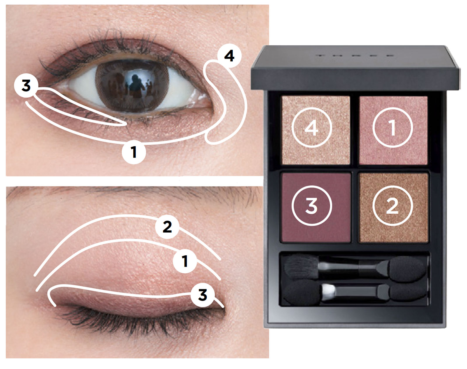 ウォームピンクを軸にしたパレット。立体感を出せる濃淡2色のベージュと締め色のボルドーで吸引力のある目元に。 スターゲージング アイシャドウクアッド 07 7,480THREE