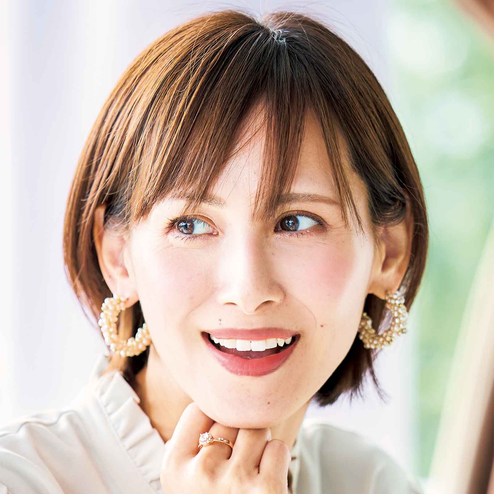ショートヘアだから、ヘアアレンジではなく、ツヤ感で差をつけることに女子会では重きを置いています。だからこそヘアオイルはマスト!チークにも使えるM・A・Cのリップバームなら、写真を撮る前にさっとお直し&血色もUPできるので、顔色も明るく若見えも叶います。乾燥が気になる時にはエリクシールの乳液で保湿して、自撮り前にシワもカバー。(画像2枚目)写真映えするツヤ髪に仕上げてくれるSHIROのヘアオイル。SAVONのさりげない香りが上品でお気に入りです。