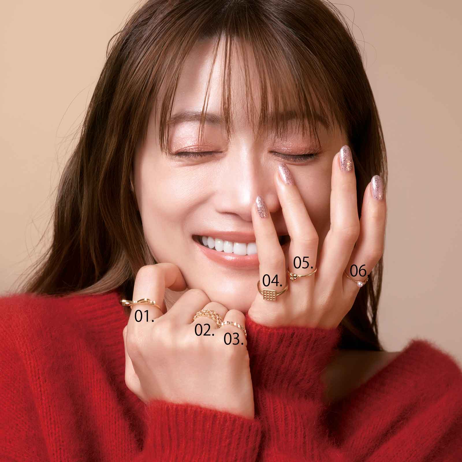 2026年の開運美容の鍵は、血色感と煌めき。林由香里さんが提案する美ST世代に似合うメイクで、若々しさと運気を同時に引き寄せて。さらに、指先にゴールドを効かせたネイルやリングで金運もアップ。顔も手元も輝かせれば、心までときめく開運オーラが完成します。