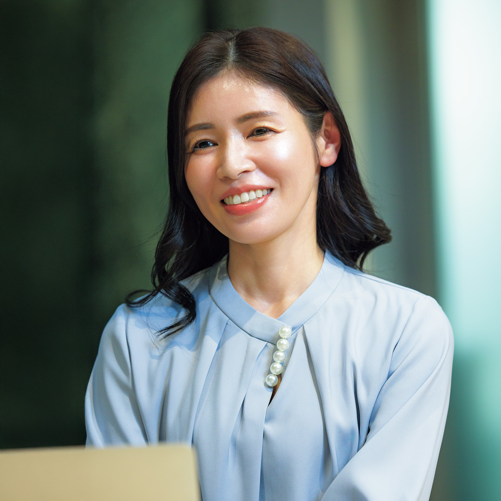 ハリツヤあふれる美肌が美STスタッフの間でも話題。皮膚科学視点のコスメ「ララビュウ」を開発。しっとり柔らかで、透明感のある肌づくりを体現する美のカリスマ。