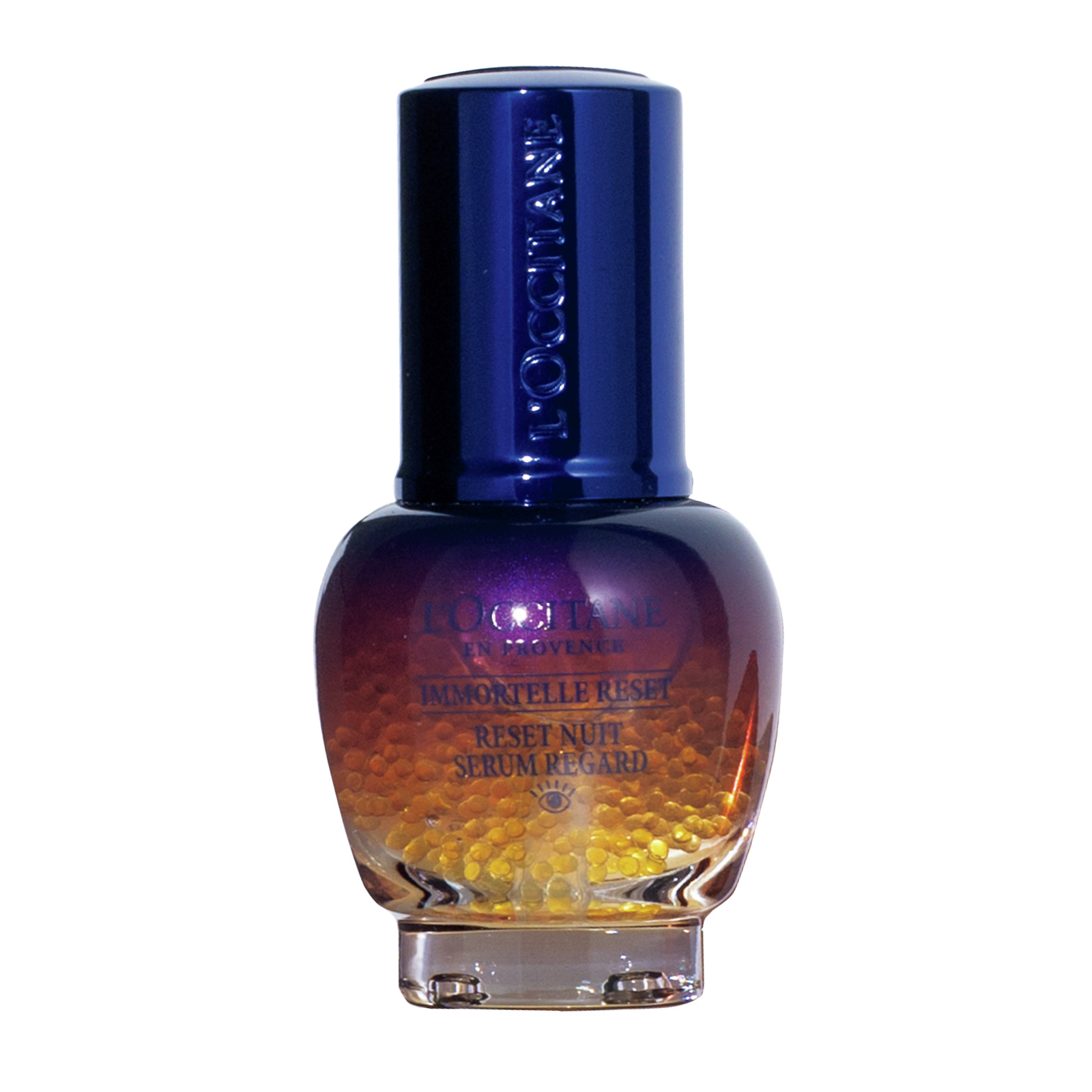 「夜、目周りにたっぷり塗って保湿すると、次に使うシワ改善美容液がぐんぐん浸透!」イモーテル オーバーナイトリセットアイセラム 15ml ¥8,360(ロクシタン