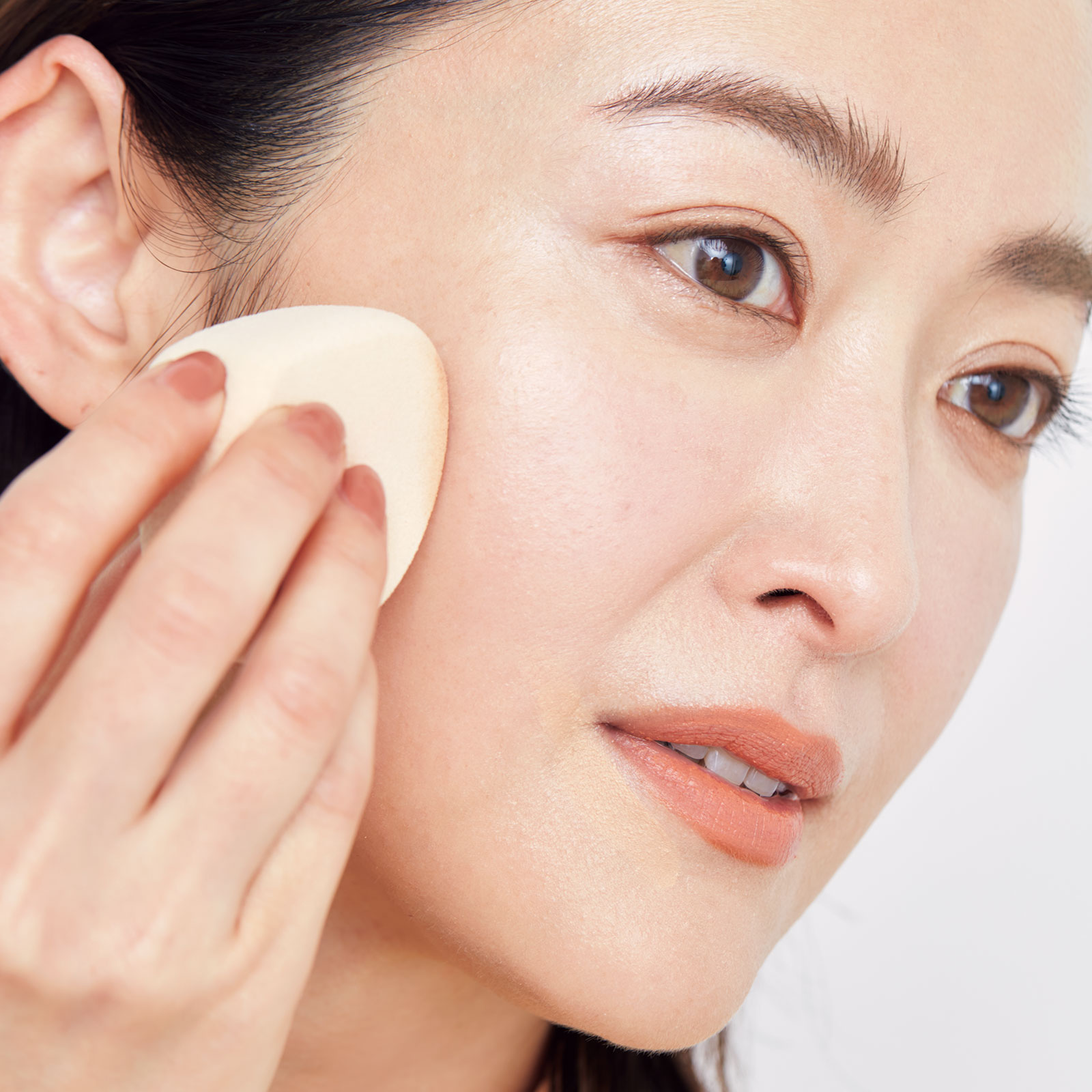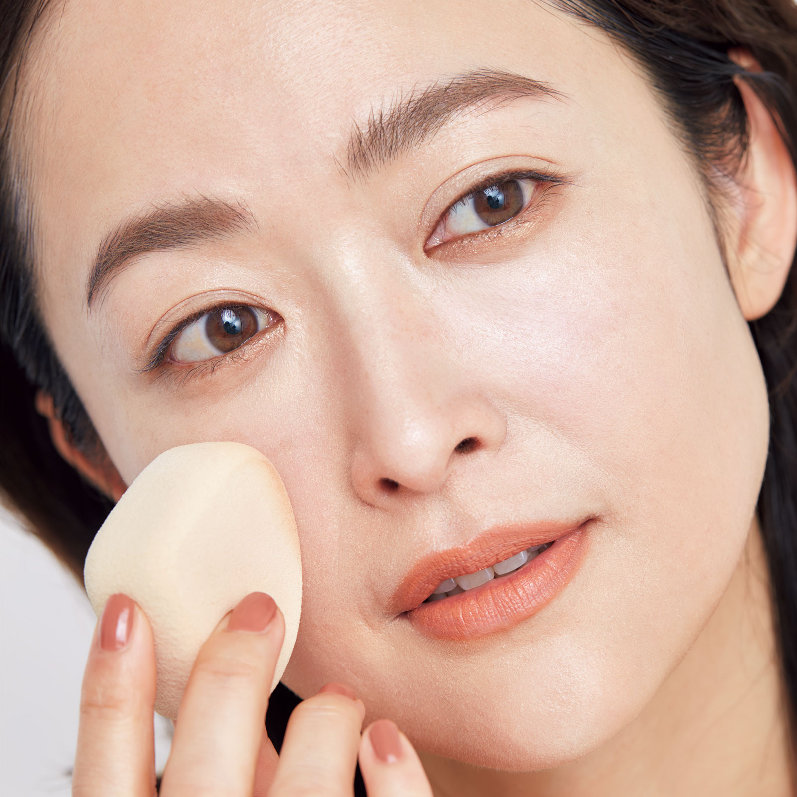 超微粒子の美容液パウダーでたっぷりとっても綺麗に仕上がる安心感が別格。シアーな質感でパフで押さえるように塗布。
