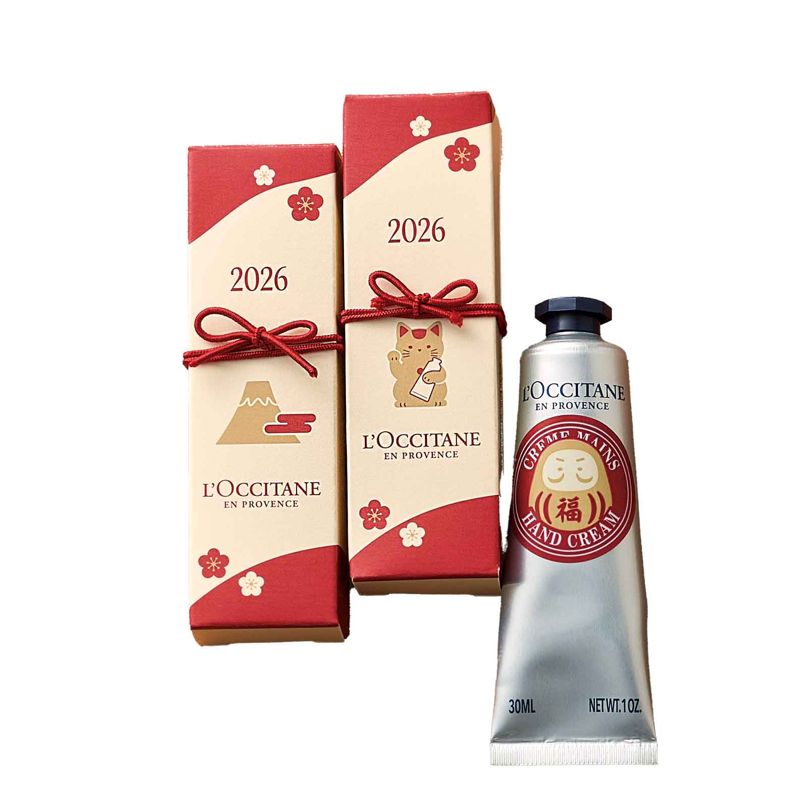 天然保湿成分シア20%配合。そのまま渡せるギフト包装で新年のご挨拶に◎。2026 NewYearハンドクリームトリオ[数量限定]¥5,610(ロクシタンジャポン)