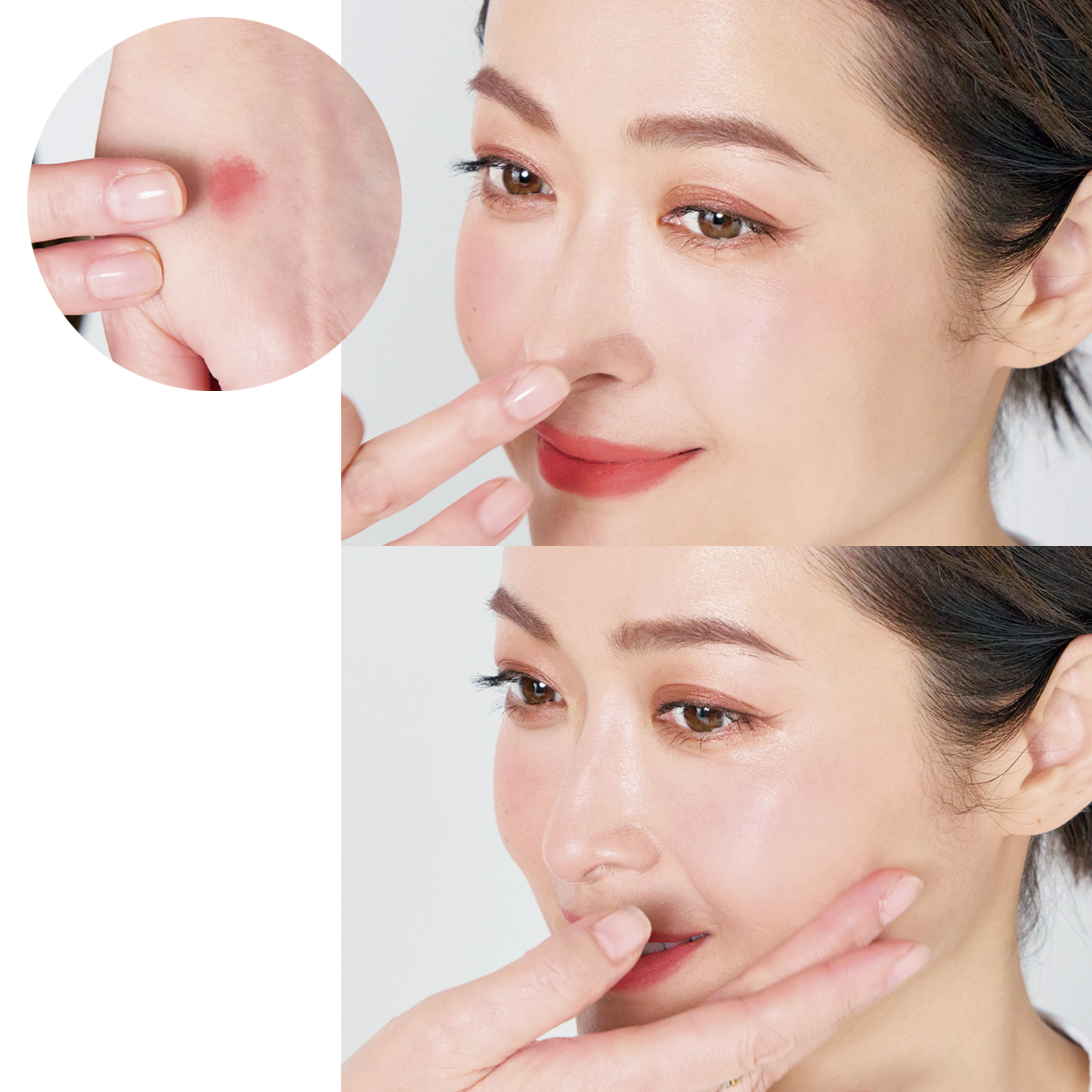 【2】鼻先などへふわっと馴染ませることで上気したような自然な血色感を仕込みます
