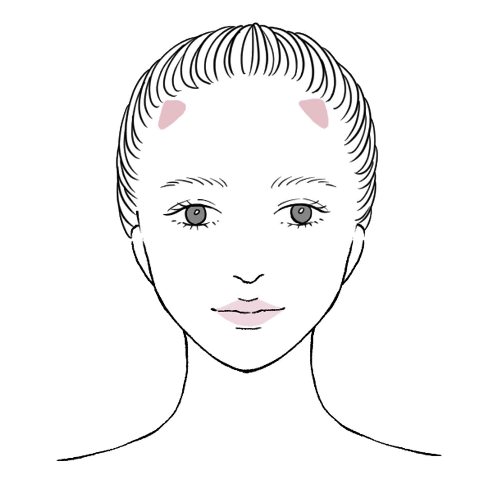 スッキリ額を出すのも小顔化には効果的。でも、こめかみ上の生え際部分が角ばって四角いと男性的な印象に。手持ちの眉パウダーなどで「角」部分をカバーし、丸く見せると小顔に見えます。