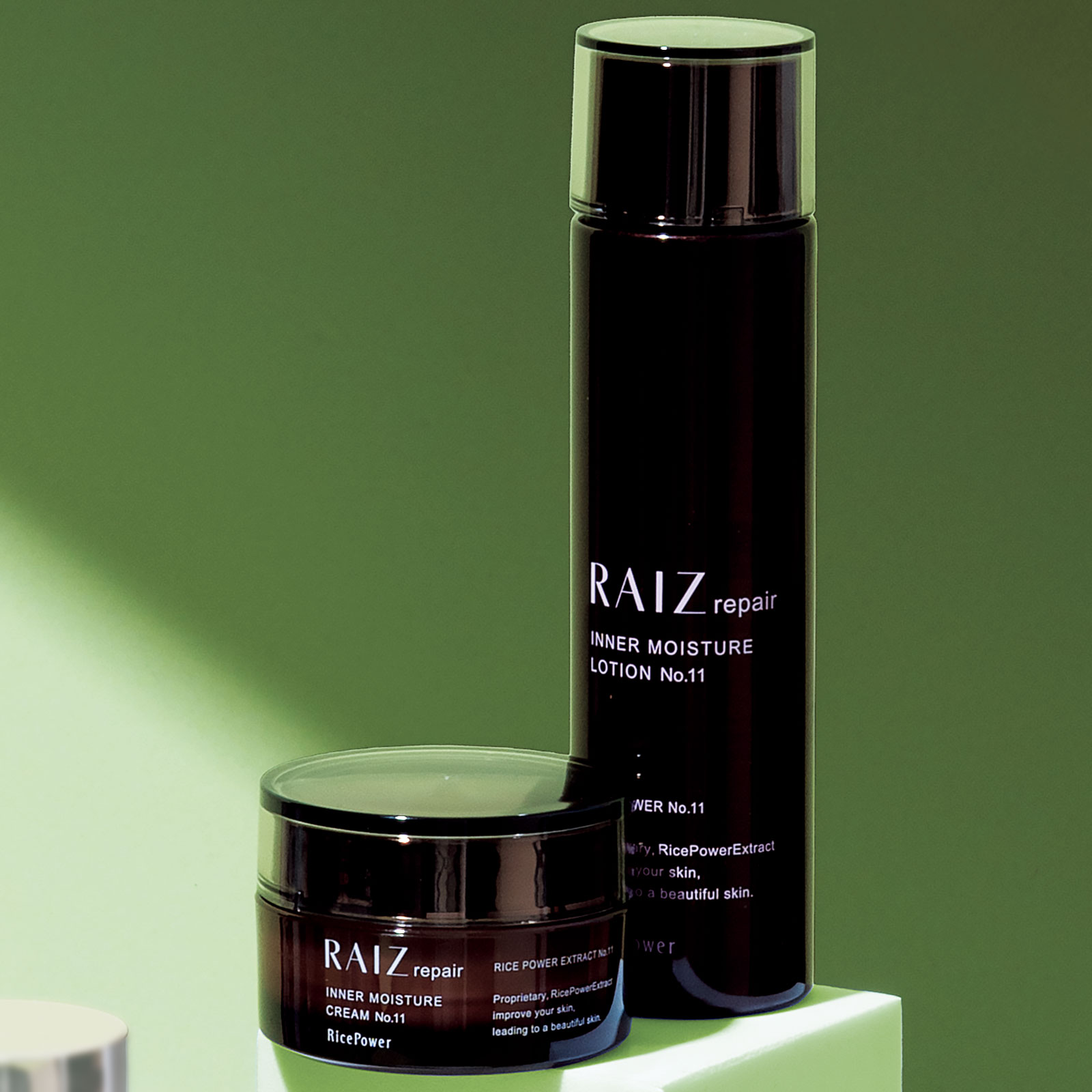 肌を潤いで満たしながら有効成分を基底層まで届けて肌改善。ライース®リペア インナーモイスチュアローション No.11[医薬部外品]120ml ¥8,800、同 インナーモイスチュアクリーム No.11 [医薬部外品]40g ¥8,800(ともに勇心酒造)