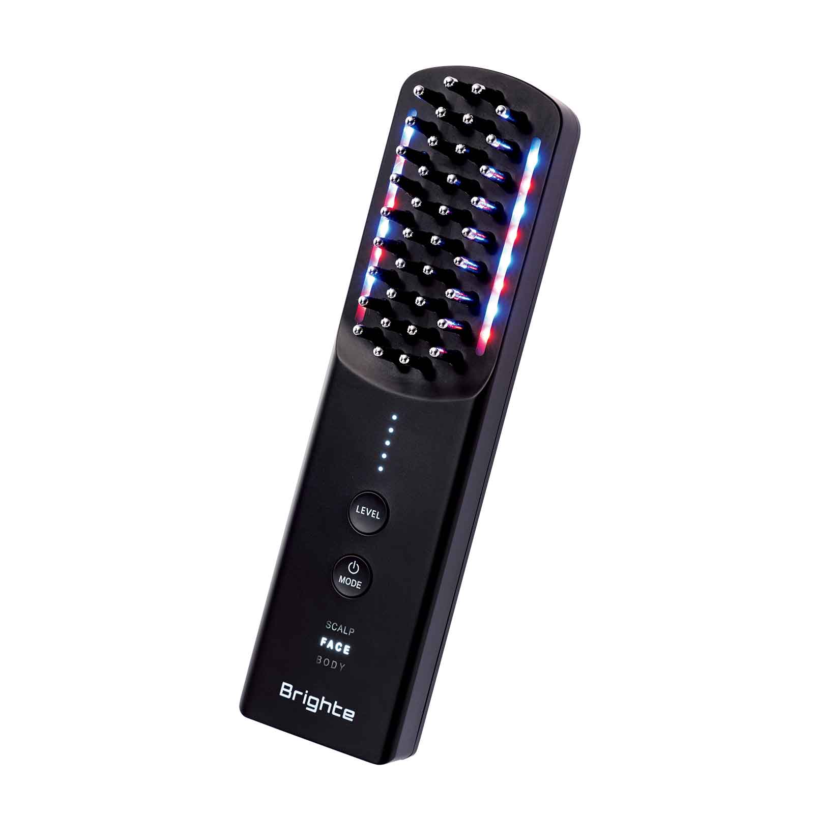 従来品と比べて刺激が190%にUPしたEMS×RF×赤青LEDのパワフルな組合わせで、頭皮・表情筋・全身を刺激。しなやかで摩擦の少ない3Dソフトピンが肌にやさしくフィットして使い心地も抜群。¥49,800(Brighte