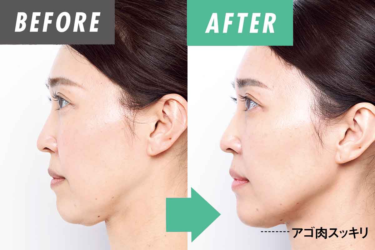 アゴ肉の変化には自分でもびっくり。顔とボディが引き締まっただけでなく、ファンデの色を替えたくなるほどトーンアップしたのは予想外の効果でした。適度な重さがあって圧がかけやすいのもお気に入りポイントです。