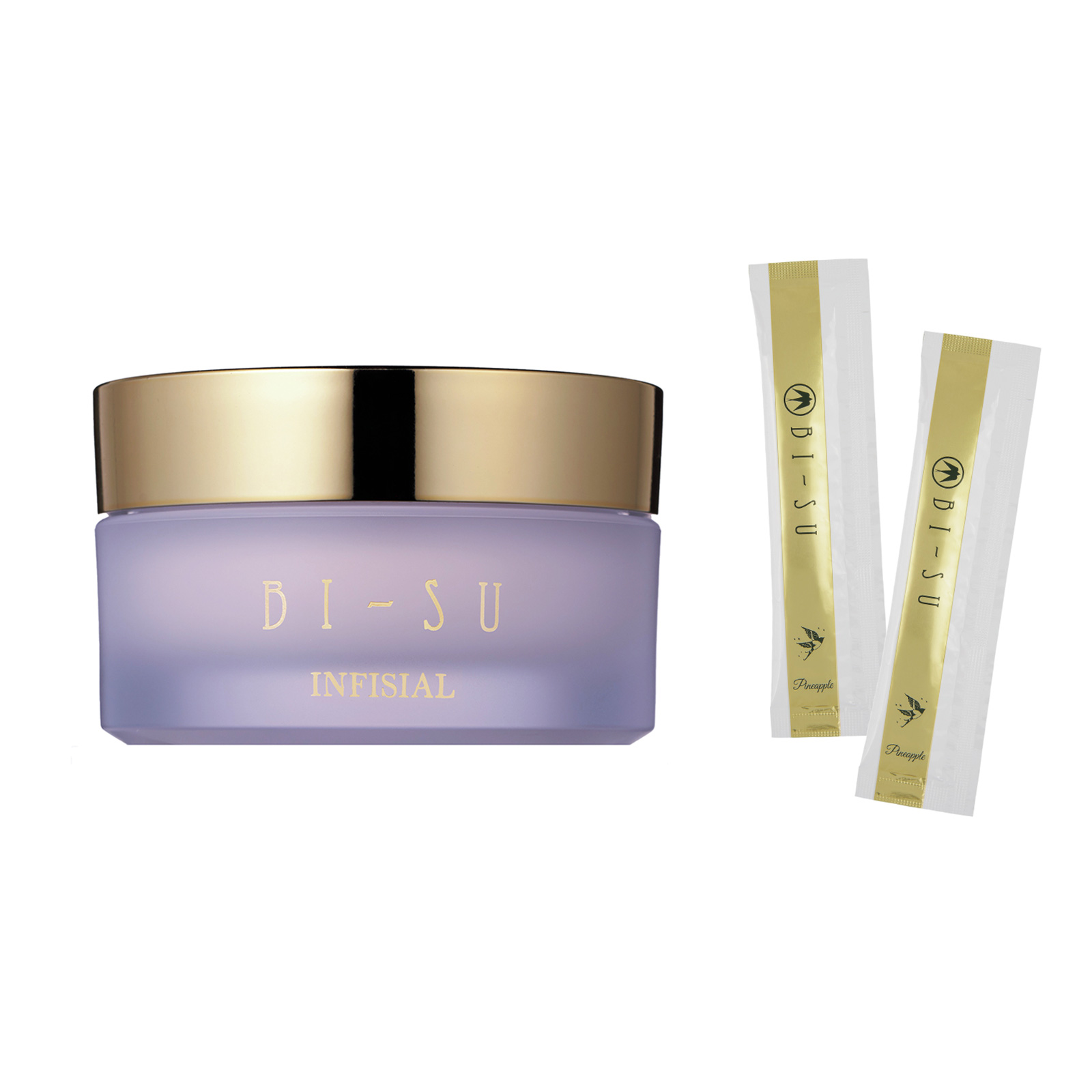 右:飲んだ後の内側から湧き上がるようなツヤ感がすごい! 健康を維持するためにも必要だと実感。パイナップル味で飲みやすい。天然アナツバメの巣のエキスを独自技術で凝縮。BI-SU エキスゼリースティック 12g×30本入り ¥16,200(BI-SU