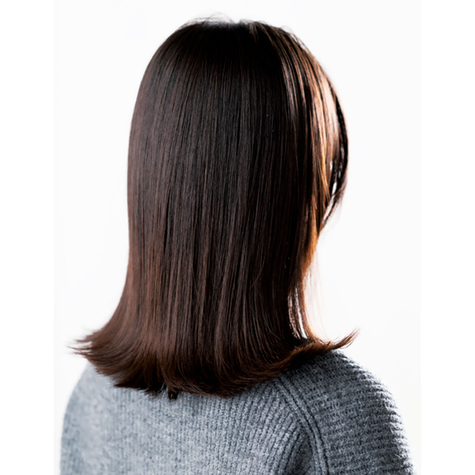 ストレートを強調したいなら、ふんわりした内巻きよりもシャープな外ハネにするのが正解。髪に束感を作ったり毛先を動かしたりするとパサッと見えるので、面で整えて光を反射するように仕上げましょう。