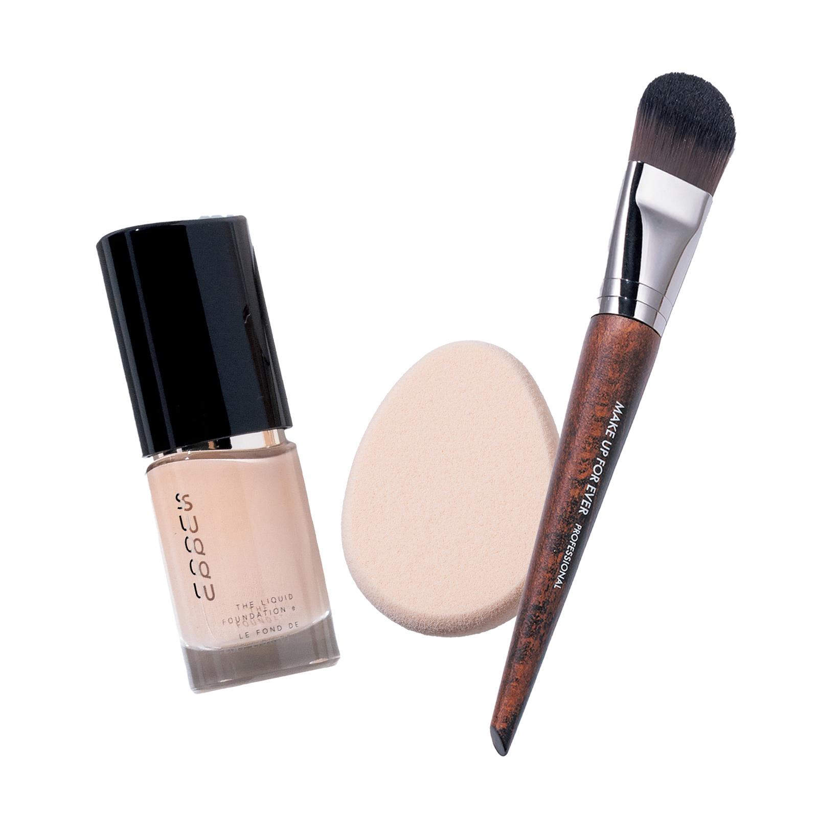平たく丸みを帯びた、ミディアムサイズのブラシがおすすめ。ファンデーションを簡単に、均一に塗れます。ファンデーション ブラシ ミディアム 106 ¥6,050(メイクアップフォーエバー