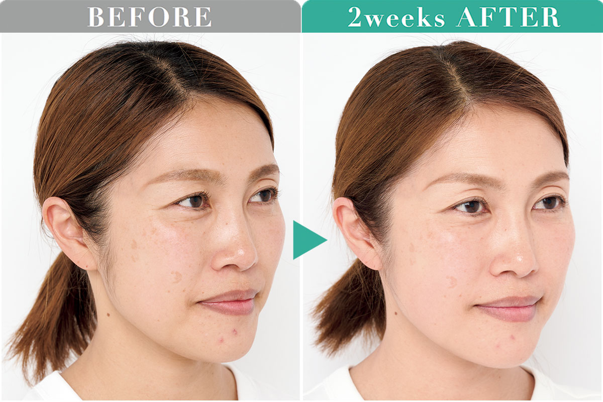 クリームイエローと、繊細なパールが色ムラや赤みを抑え、明るい印象に