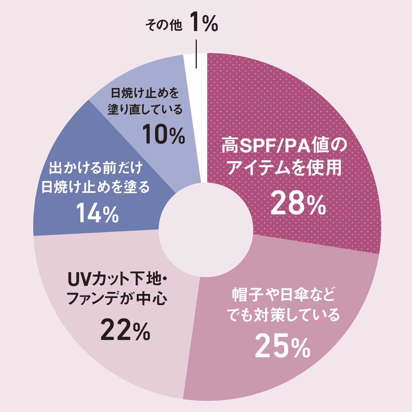 「絶対に日焼けしたくない!」と語る読者が大部分。外出時は帽子や日傘で対策を補完する一方、日焼け止めの塗り直しはメイク崩れや手間が壁との声も。UV対策は“知識”より“続けられる設計”が重要なことがわかります。