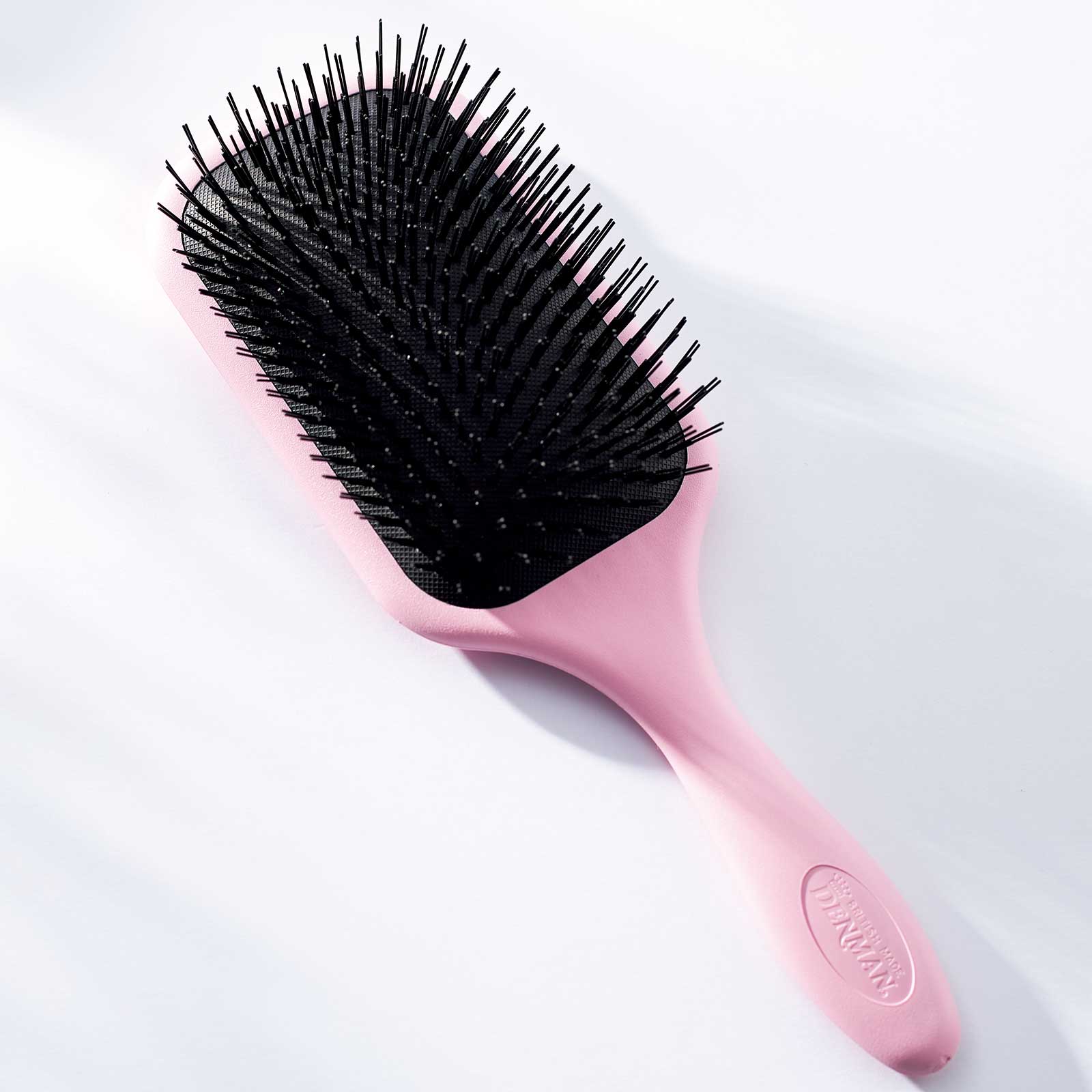「ブラッシングをしていて毛が絡みやすくなってきたと思ったら、加齢により髪の毛が細くなってきたことが原因かもしれません。毛先→中間→根元の順に梳かしていくのがオススメです。ブラシのソフトピンが長短2種類あって計算されたピン配置のデンマンのパドルブラシなら絡まず一気に梳かせます」デンマン D90L タングルテイマー ウルトラ ピンククラッシュ ¥3,740(トリコ インダストリーズ