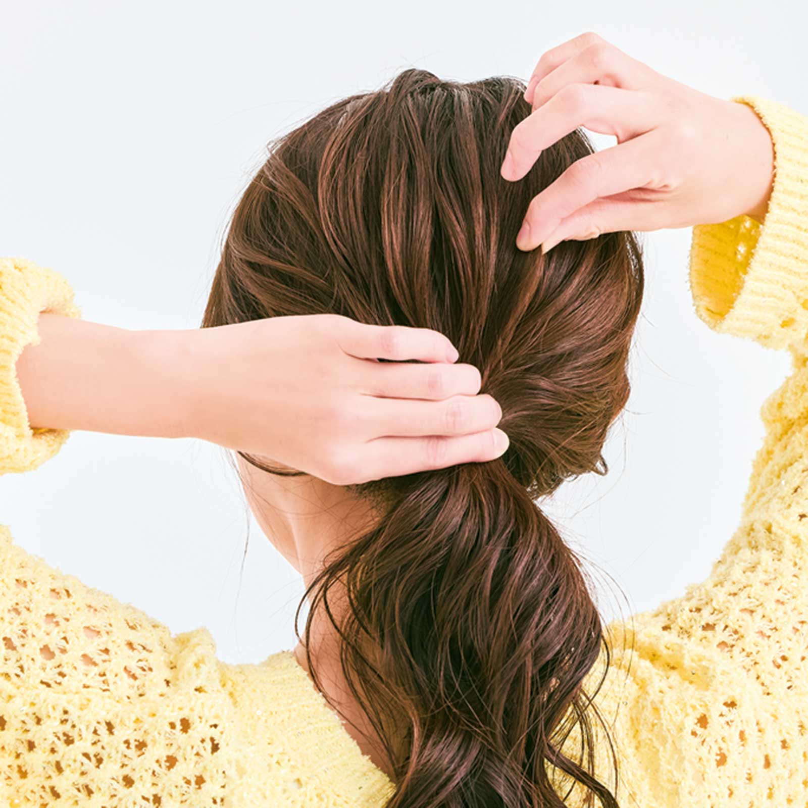 【しゃれ結び】毛流れを下にして、根元を隠し表面をポコポコさせる