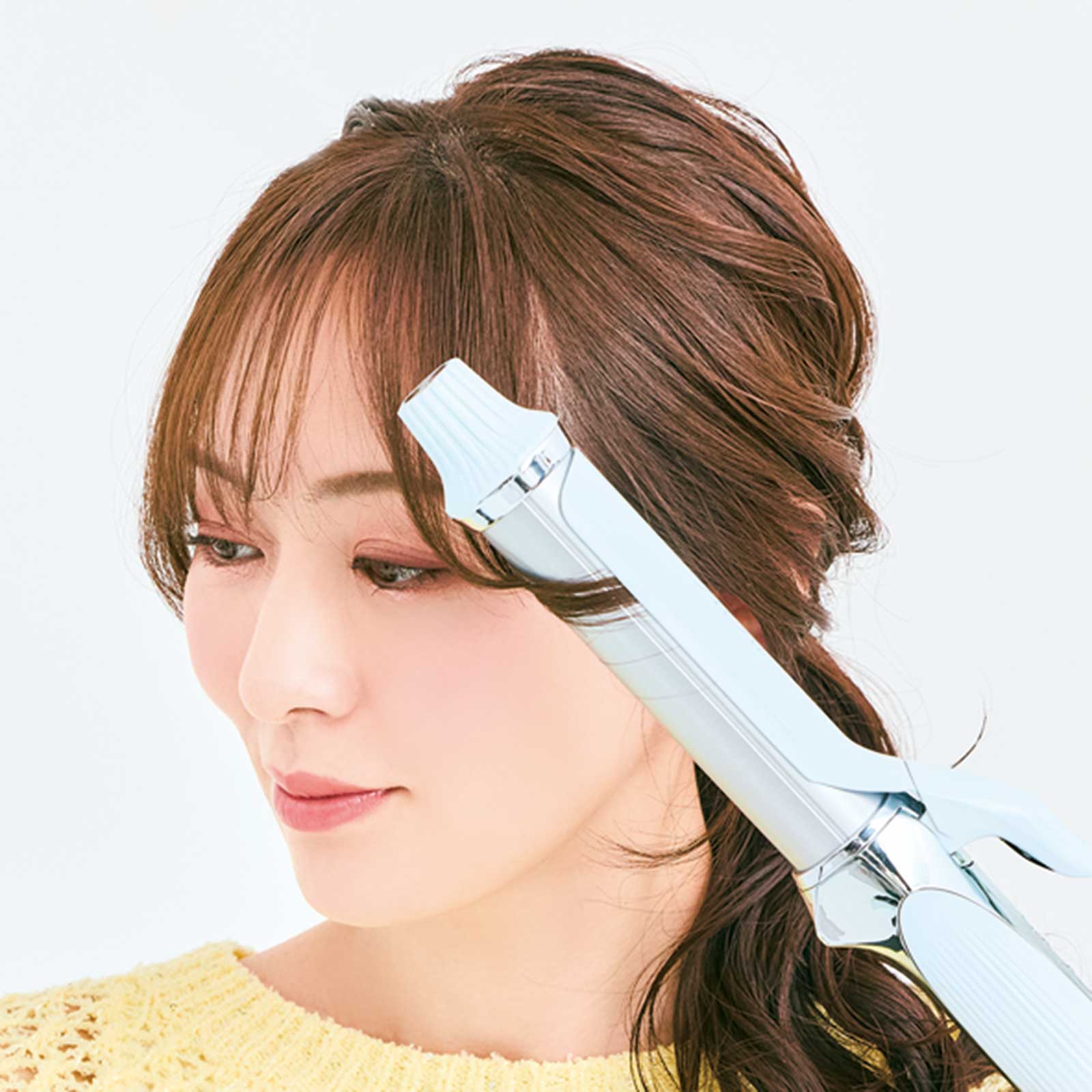 顔周りに下りる緩やかなカールも、全体の立体感のあるカールも、どちらも作れる太めのアイロン。リファカールアイロン プロ 32mm ホワイト¥25,000(MTG)