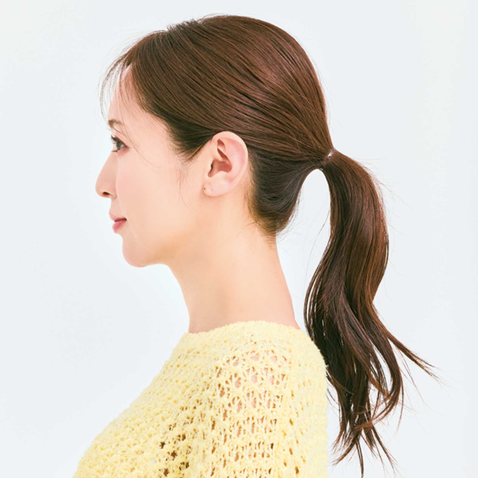 ▶おとなの一つ結びは位置が鍵!『おばさん見え』を防ぐ、洒落見えの正解